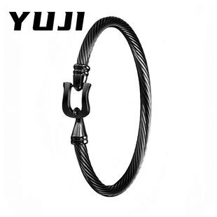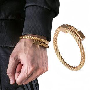 | Pulsera de acero de titanio abierta transfronteriza europea y americana, nueva pulsera de acero inoxidable con ajuste en forma de C, pulsera unisex al por mayor |