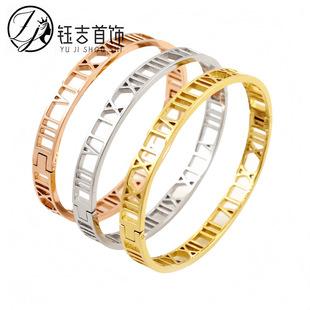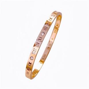 | Pulsera de acero de titanio con números romanos, estilo nuevo, moderno y sencillo, estilo transfronterizo, pulsera de acero inoxidable con pareja hueca, venta al por mayor |