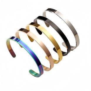 | Pulsera de acero de titanio abierta europea y americana, pulsera lisa en forma de C, se puede grabar, acero inoxidable, joyería de mano resistente a la decoloración, al por mayor |