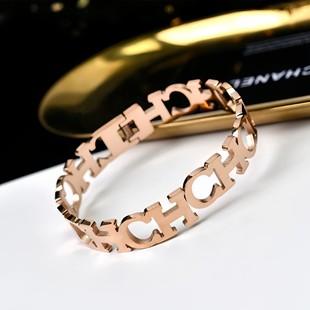 | Pulsera de acero inoxidable con resorte CH para mujer, estilo INS europeo y americano, con personalidad de celebridades de Internet, pulsera hueca con letras de acero de titanio |