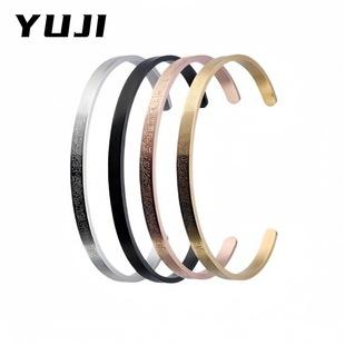 | Pulsera de acero de titanio abierta en forma de C Ayatoll Kursi Pulsera árabe de acero inoxidable de 6 mm resistente a la decoloración Inglés |
