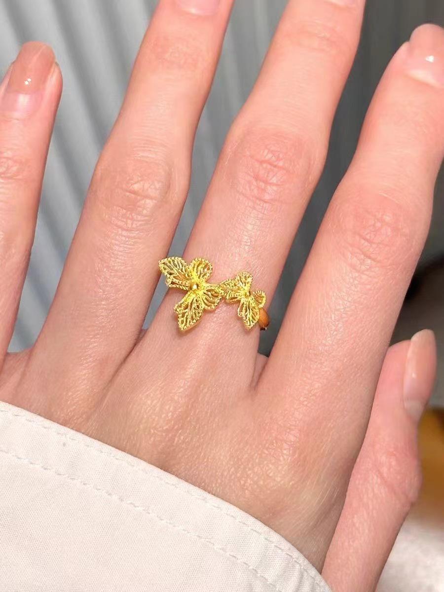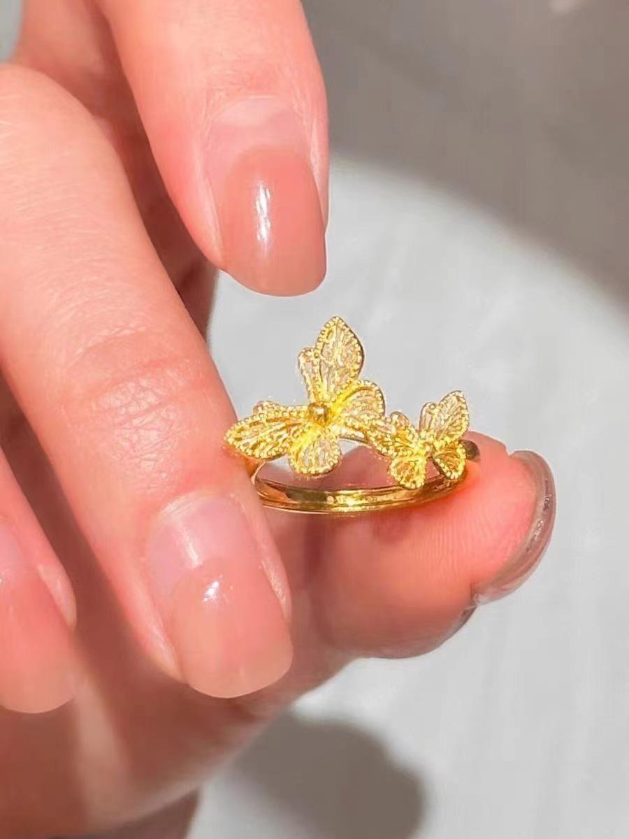 Nuevo Anillo Mariposa Filigrana Diseño Nicho Chapado en Oro Lujo Ligero Anillo de Dedo Suelto Mariposa Sueño de Seda Anillo Abierto