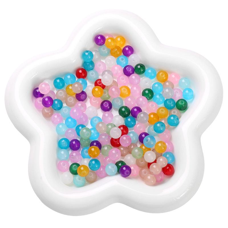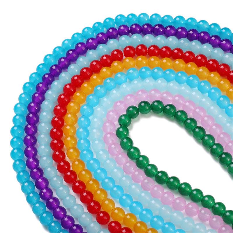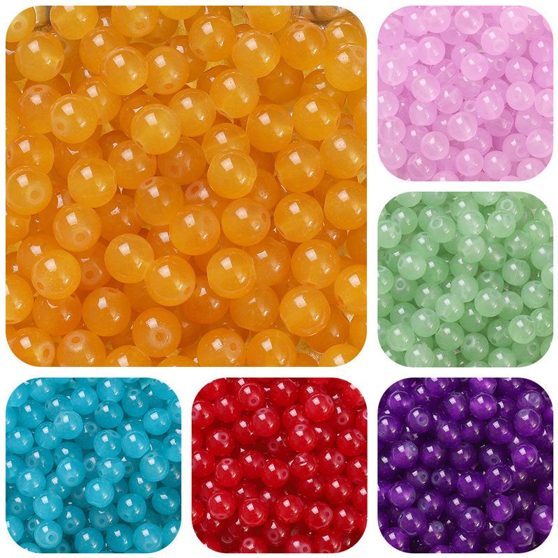 Cuentas redondas de jade de imitación de gelatina de vidrio, cuentas sueltas hechas a mano, pulseras, collares, accesorios de joyería, material