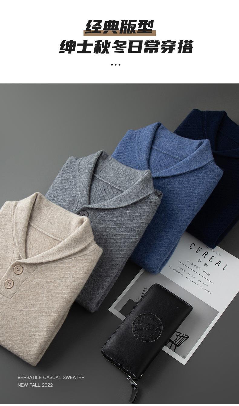 Suéter de Cachemira para Hombre Cárdigan Medio Camisa Base Uso Interior Uso Exterior Casual Negocios Suéter Cálido Color Sólido Suéter con Hebilla Moderno