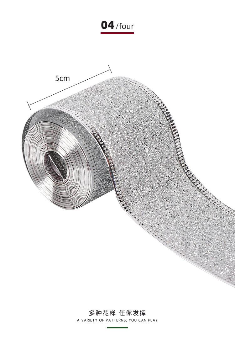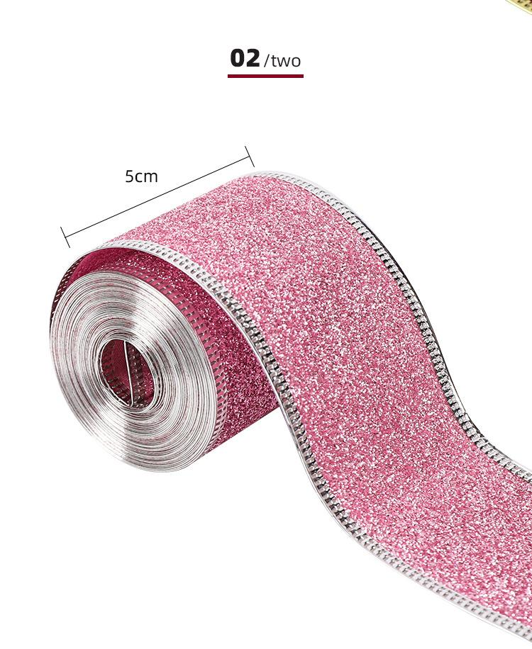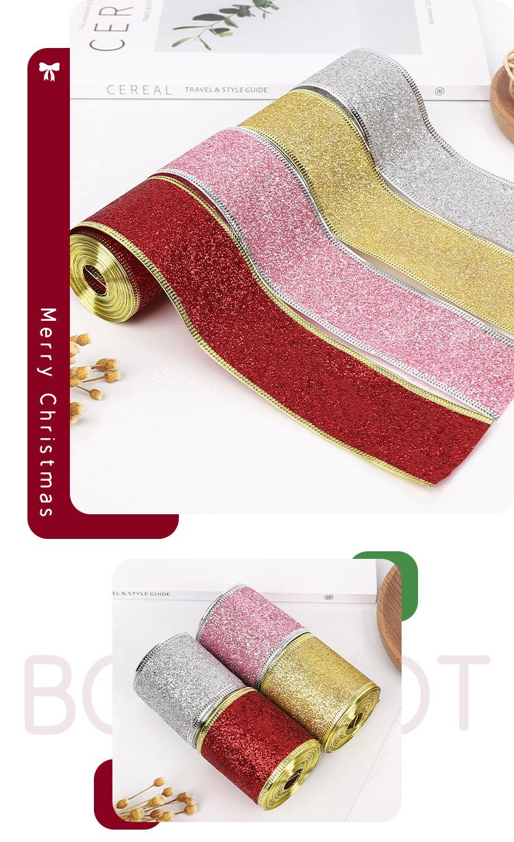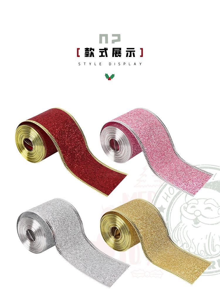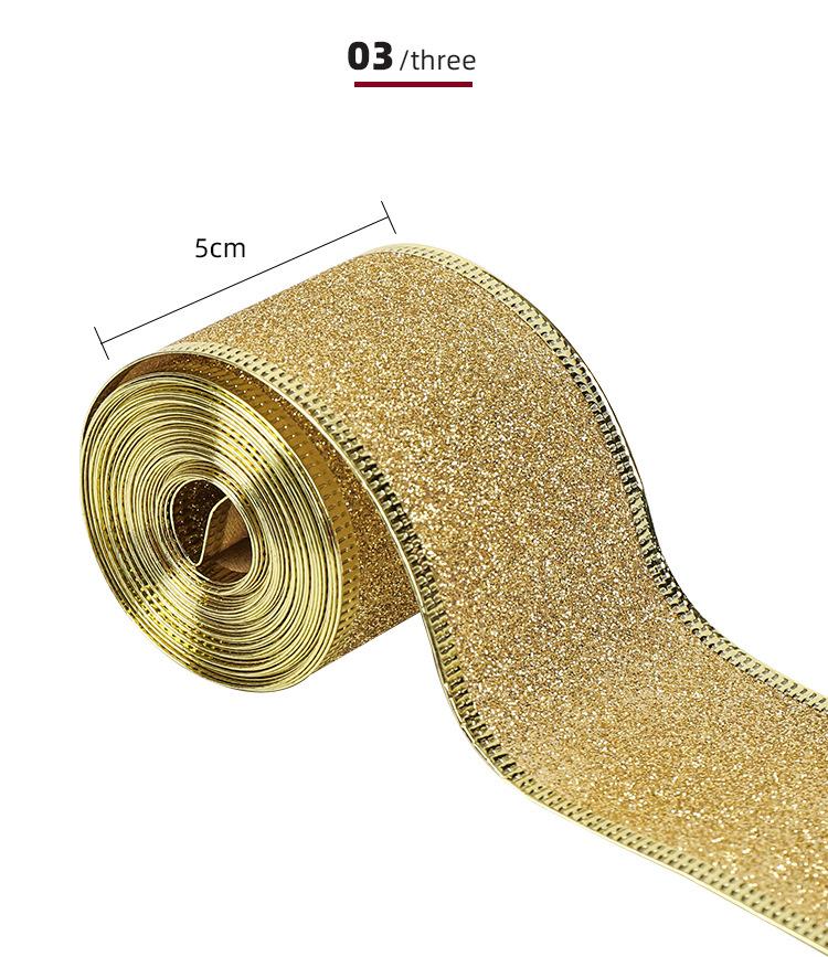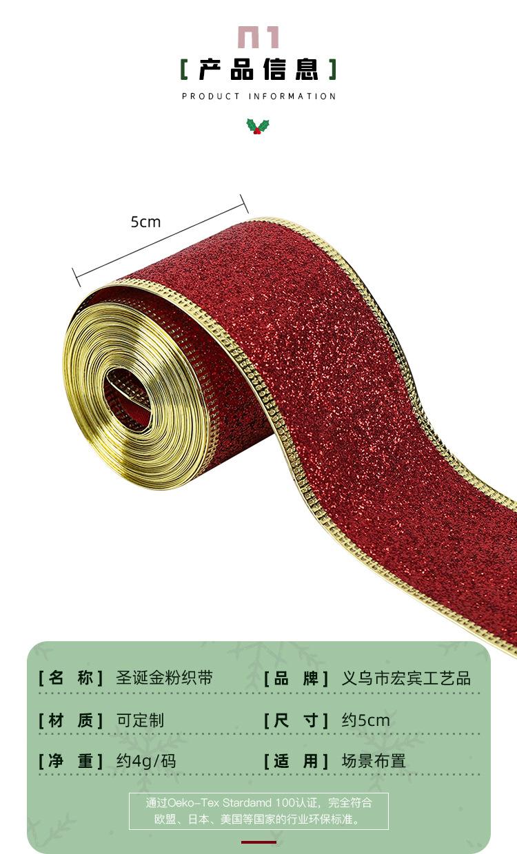 Cinta Navideña Cinta de Embalaje Copia con Borde de Alambre Decoración Navideña Lazo Polvo Dorado Cincha Fabricante