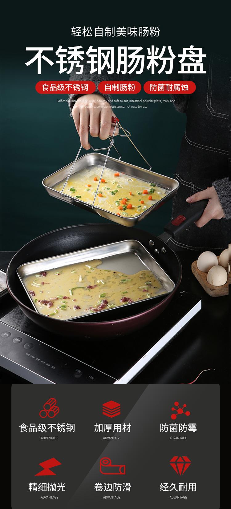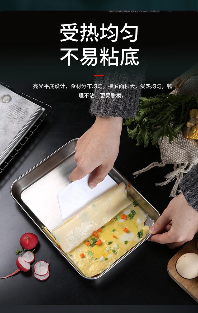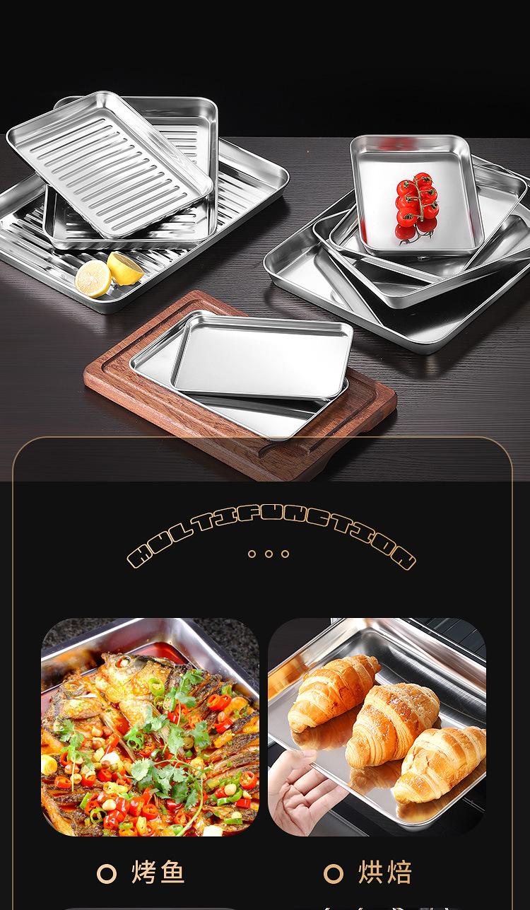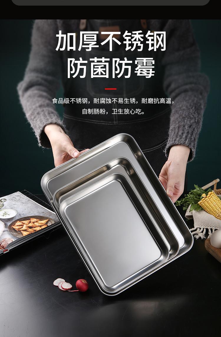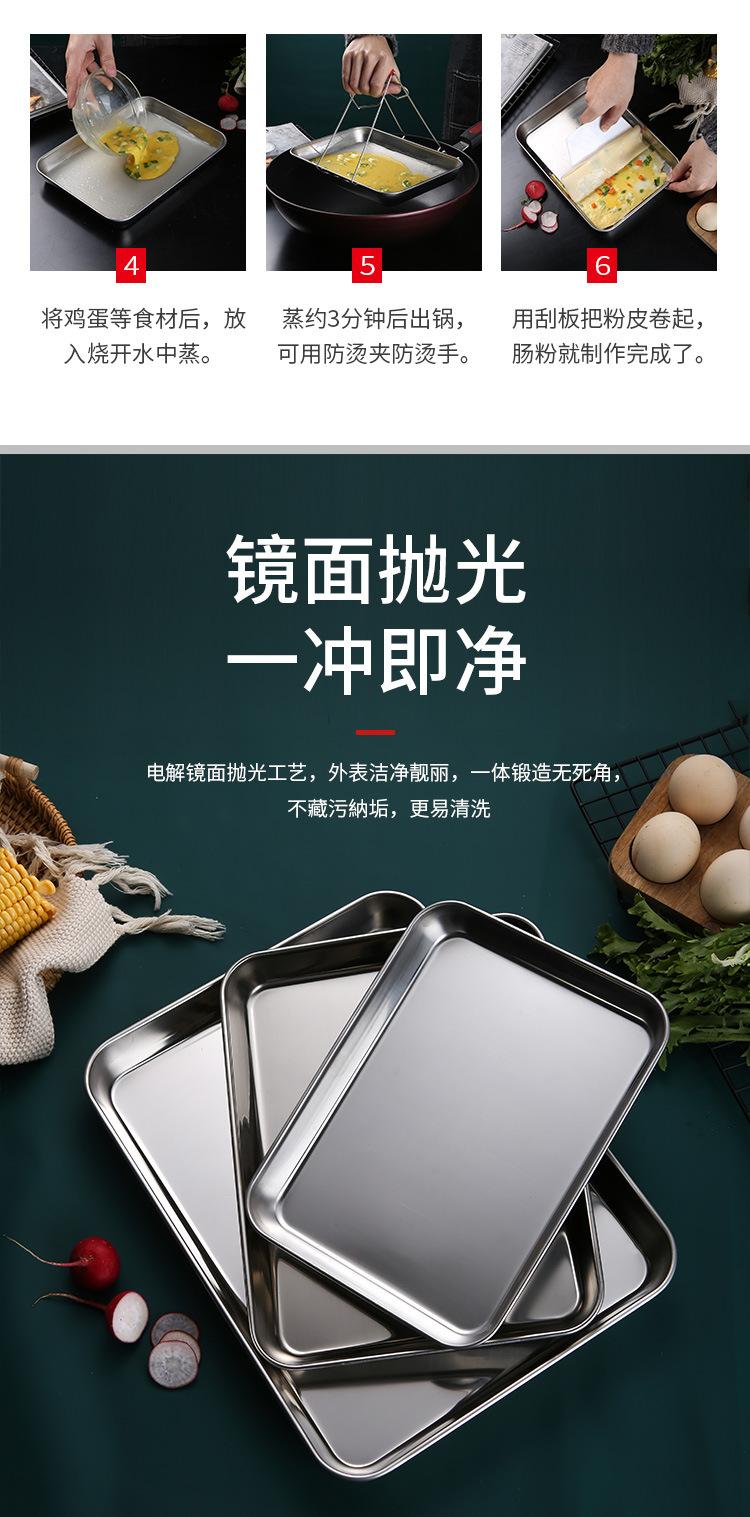 Bandeja para hornear de acero inoxidable engrosada con fondo plano cuadrado, placa de acero inoxidable para rollos de fideos de arroz, placa de acero inoxidable cuadrada multiusos con fondo plano, placa para cocinar al vapor con rollos de fideos de arroz fríos, placa para barbacoa de cocina, bandeja de cocina japonesa más profunda