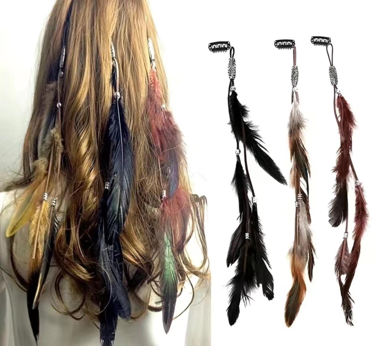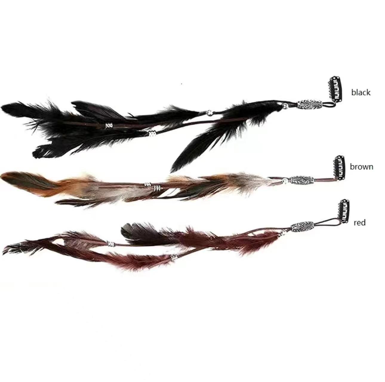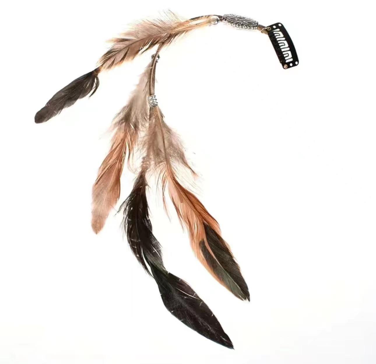 Traje con clip BB de plumas indias transfronterizas 2024, banda para el cabello estilo étnico bohemio con clip BB, accesorios para el cabello salvajes