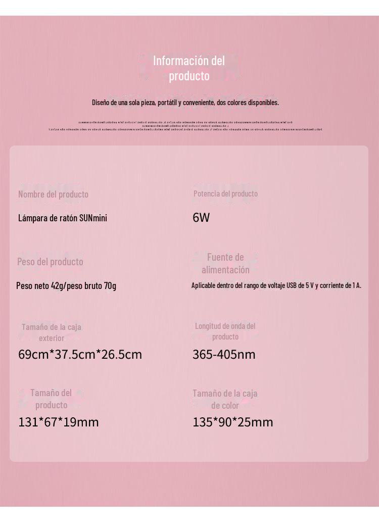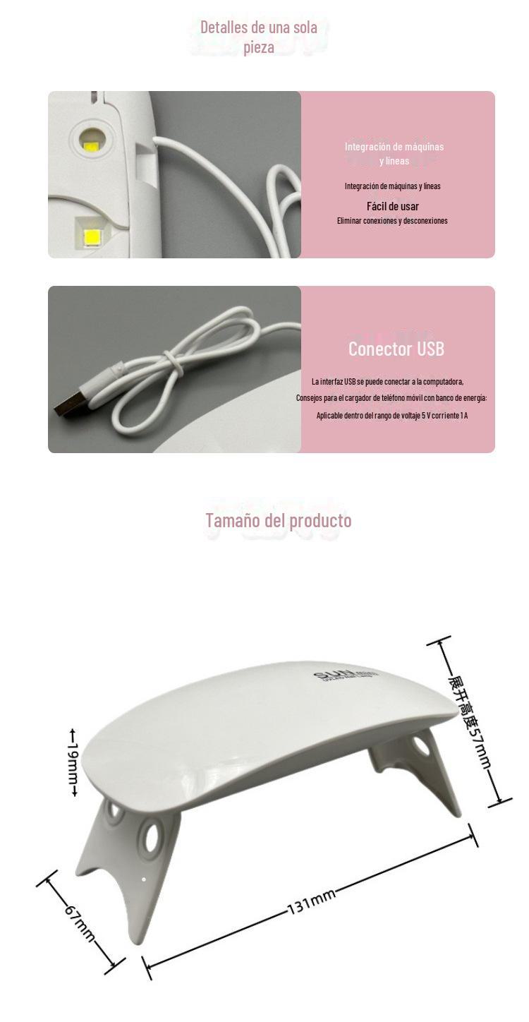 Lámpara de uñas Sunmini Mouse, minimáquina de fototerapia plegable de mano, lámpara de secado para hornear uñas, lámpara de fototerapia de curado UV
