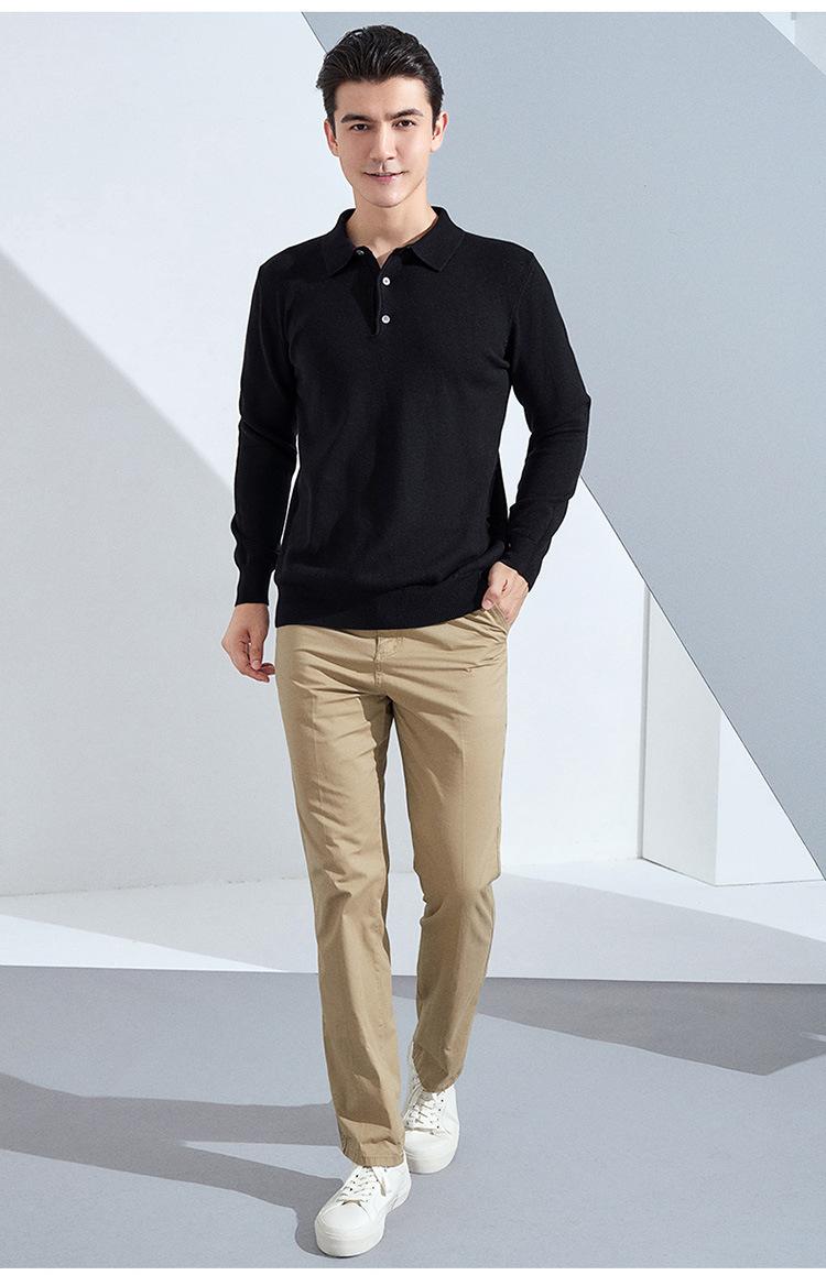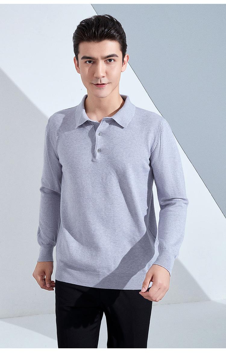 Suéter de cuello polo para hombre, suéter de manga larga, ajustado, con solapa y botones, camisa holgada de manga larga para papá, camisa de otoño