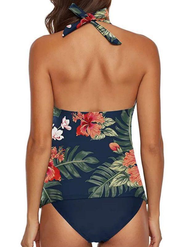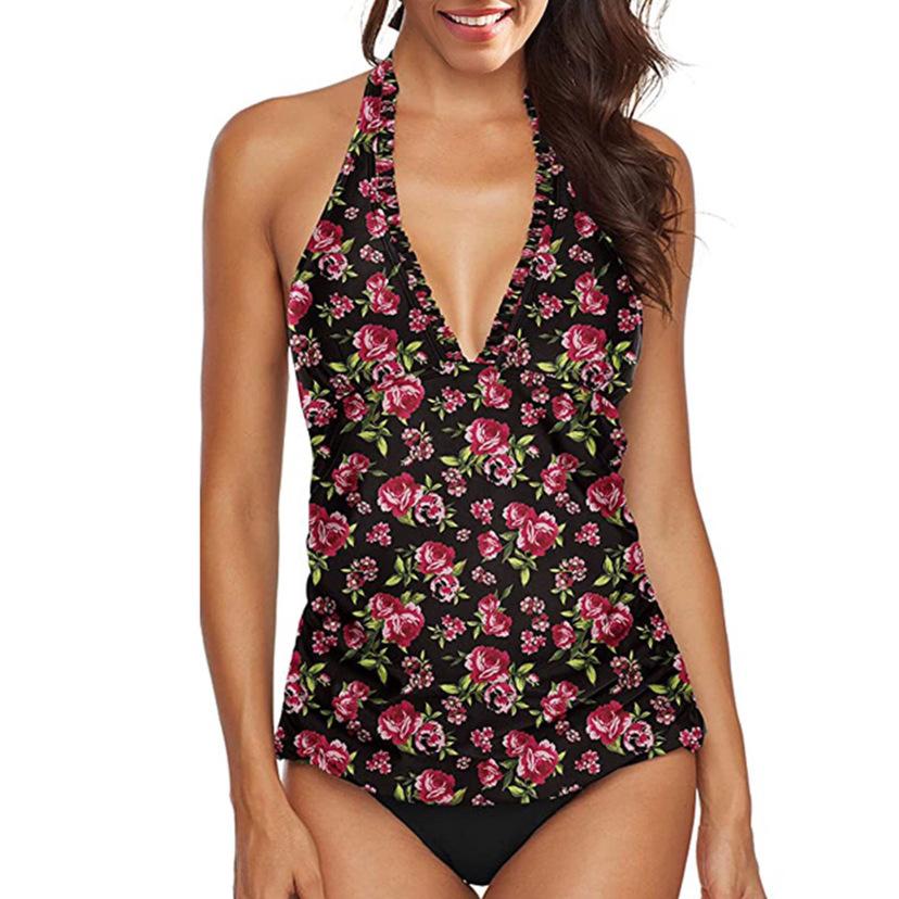 Traje de baño de dos piezas para mujer, estilo europeo y americano, con espalda descubierta y abertura en la parte delantera.