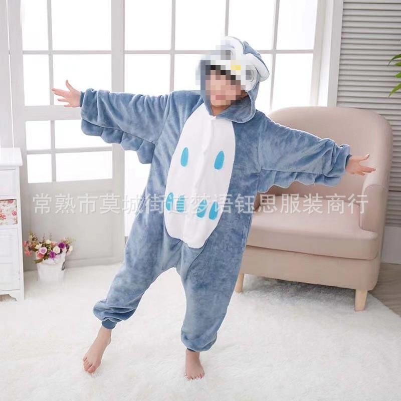 Pijamas de una pieza de franela de dibujos animados para niños de Stitch azul nuevo, suministro transfronterizo de otoño e invierno, cálidos para el hogar