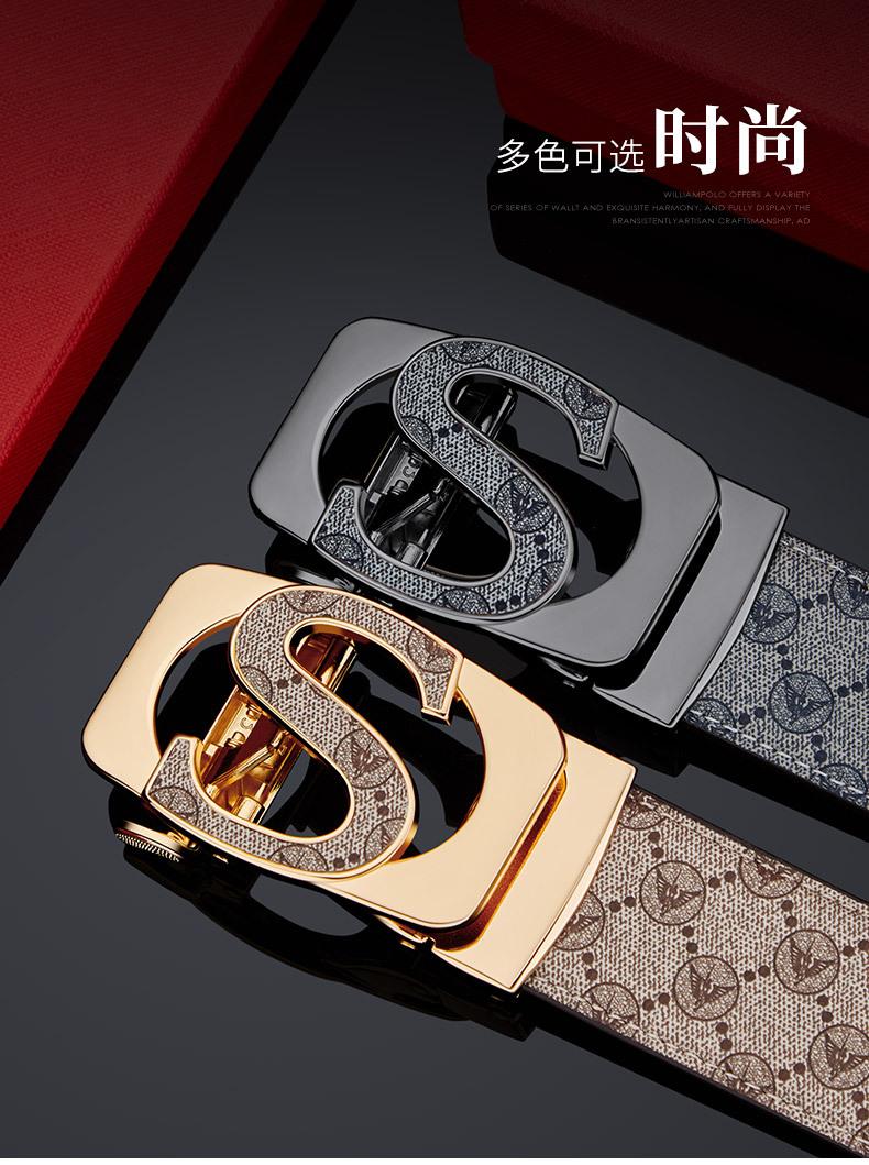 Cinturón Paul de cuero para hombre, hebilla automática de alta calidad, cinturón de moda para hombre, cinturón informal de negocios con letras, productos genuinos.