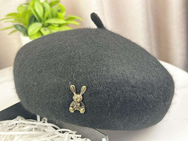 Wool blended black beret-bear, Wool blend creamy-white beret-bear, Wool blend wine red beret-bear, Wool blend ...