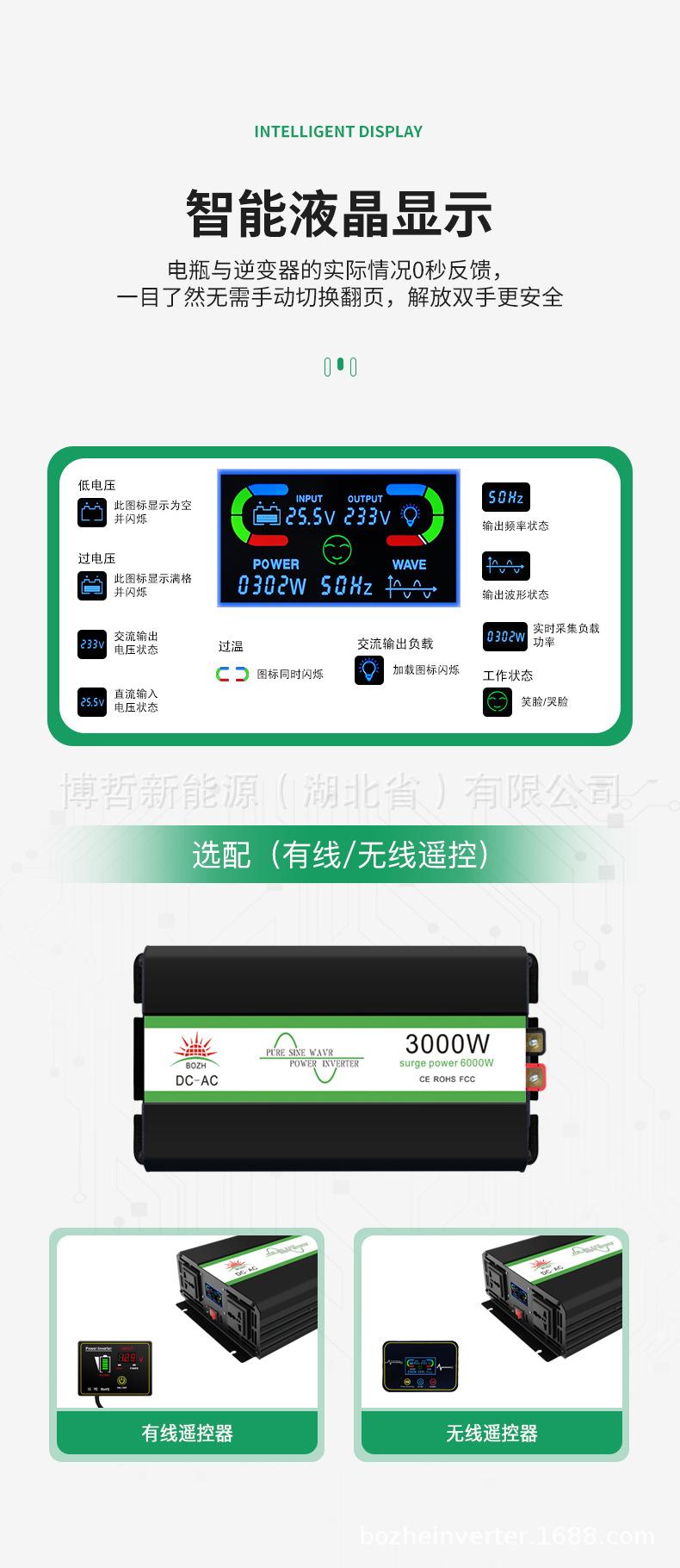 Inversor de onda sinusoidal pura al por mayor 12V 24V inversor de coche de alta potencia 2000W 3000W suministro de fábrica