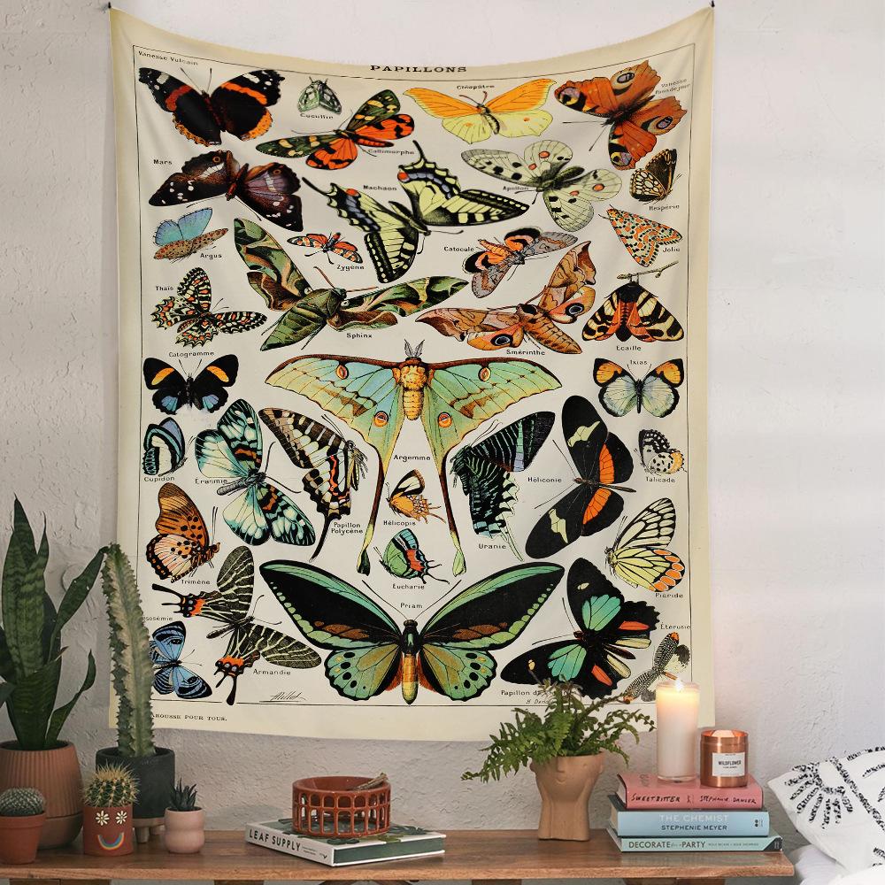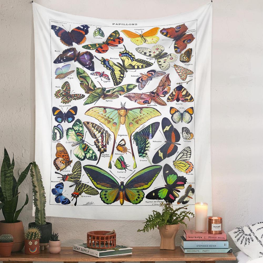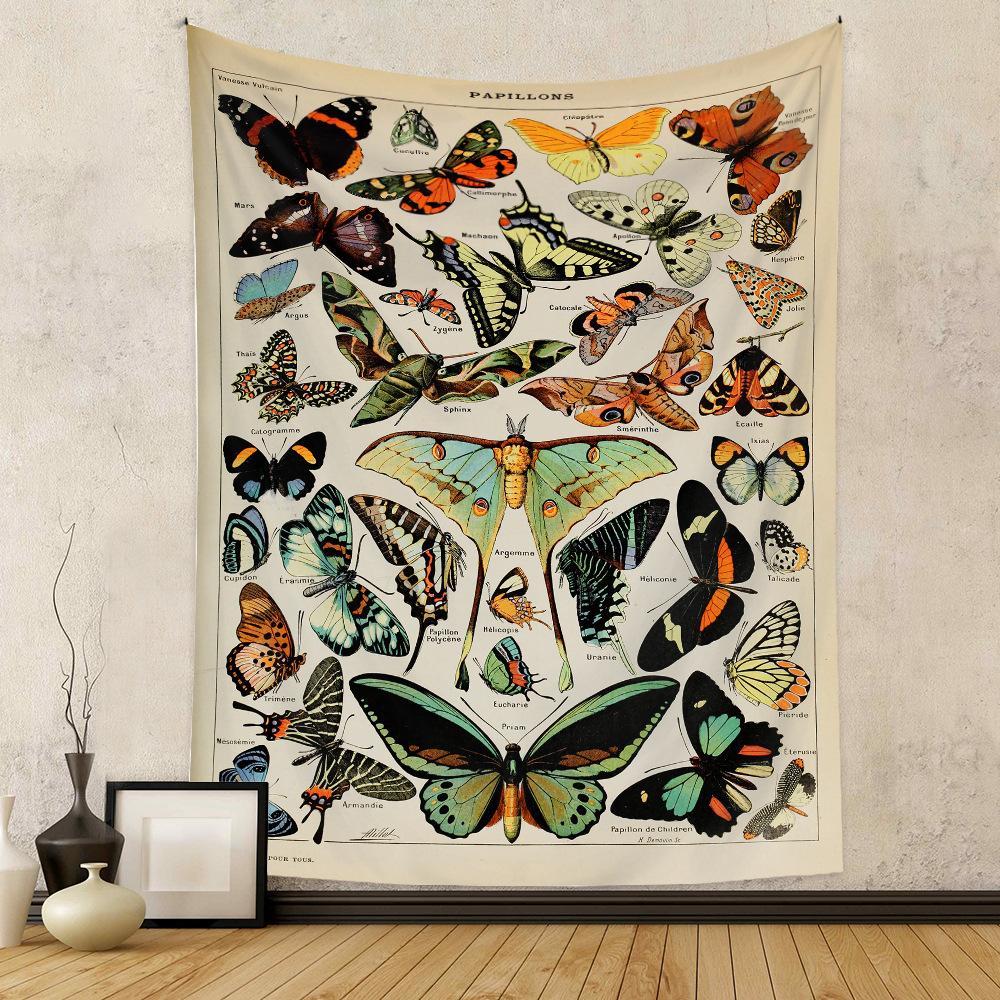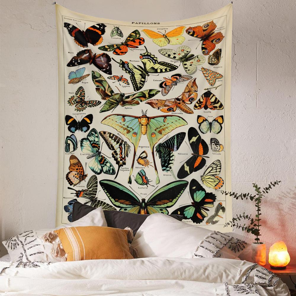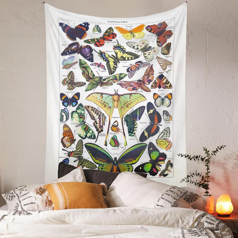 Tapiz bohemio transfronterizo para el hogar, decoración de habitaciones, tela colgante, fondo de tela, tapiz de mariposas