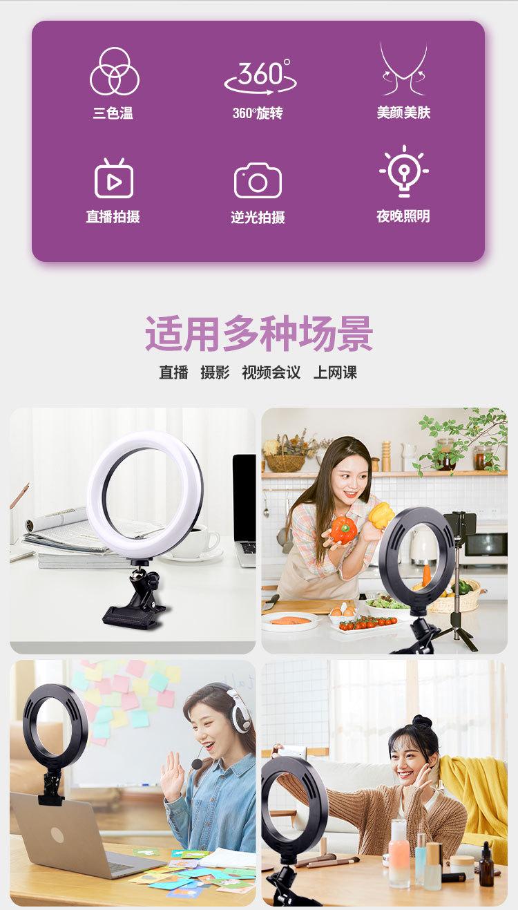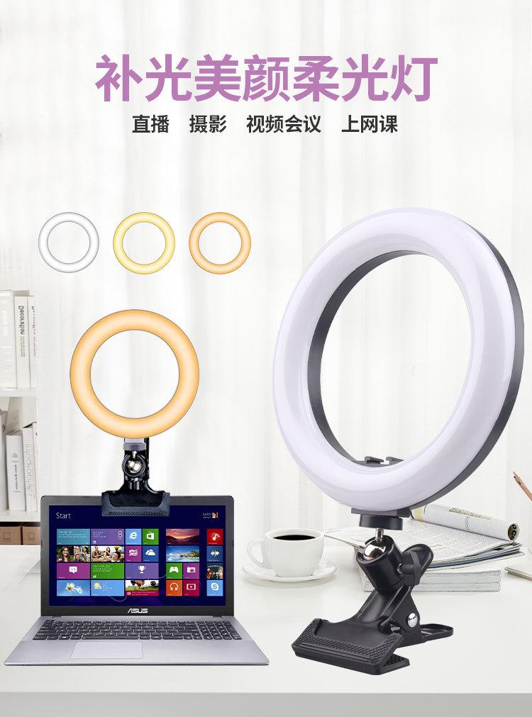 Lámpara de luz de relleno en vivo de escritorio, luz de lectura, ancla transfronteriza, anillo de luz de belleza para selfies, luz con clip para fotografía fotográfica