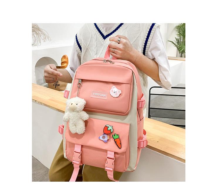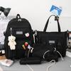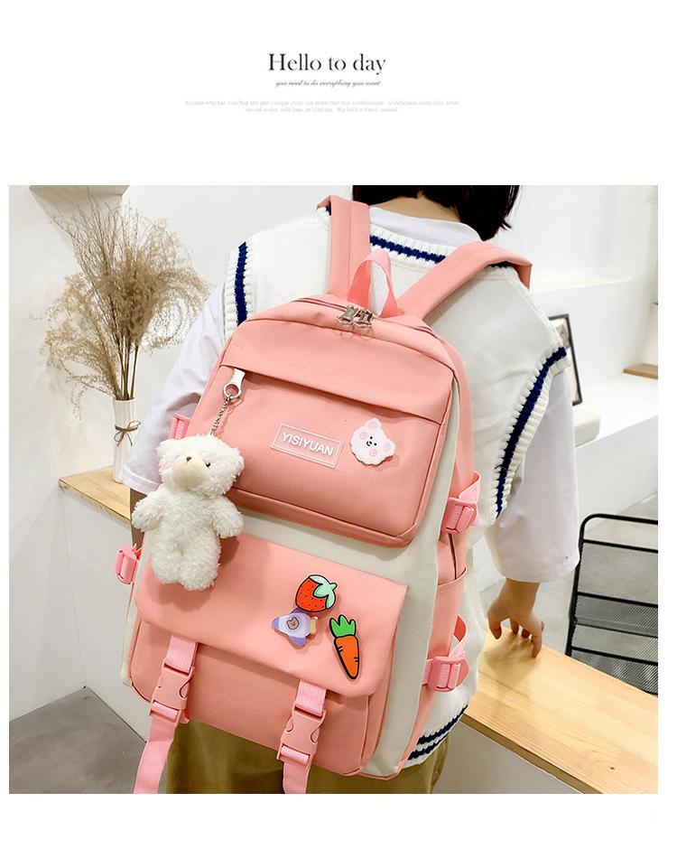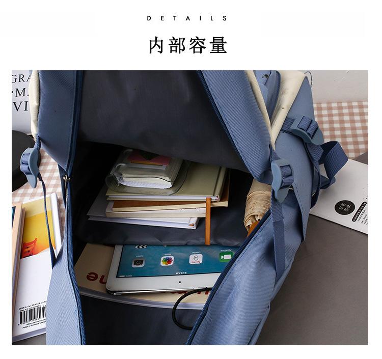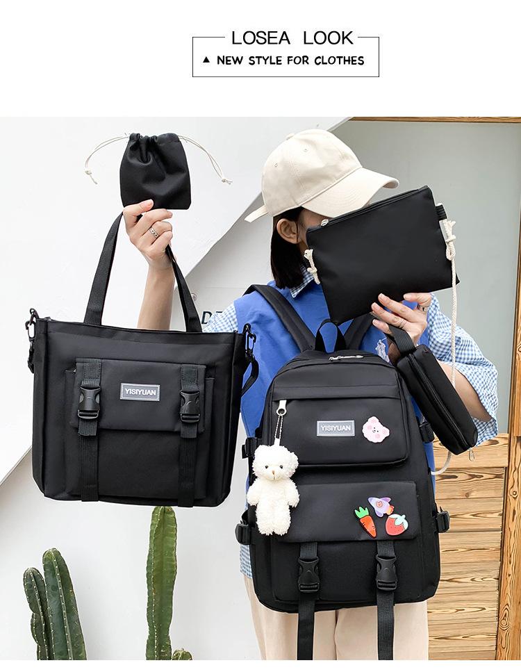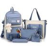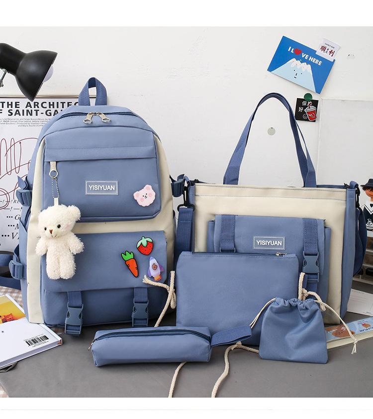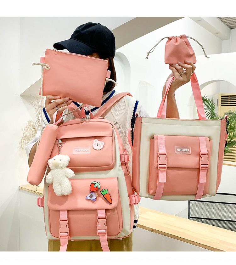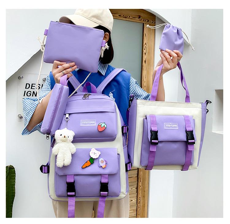 Nueva mochila de lona para mujer, estilo coreano Harajuku, mochila escolar de cinco piezas de gran capacidad, mochila para estudiantes universitarios, venta al por mayor