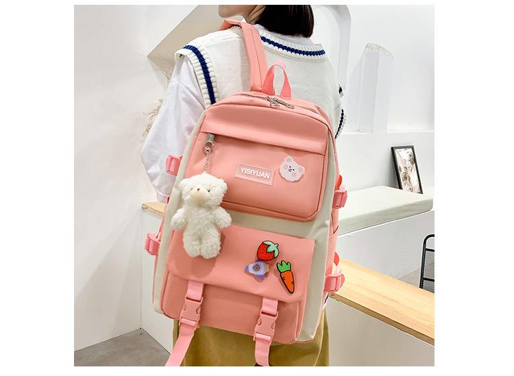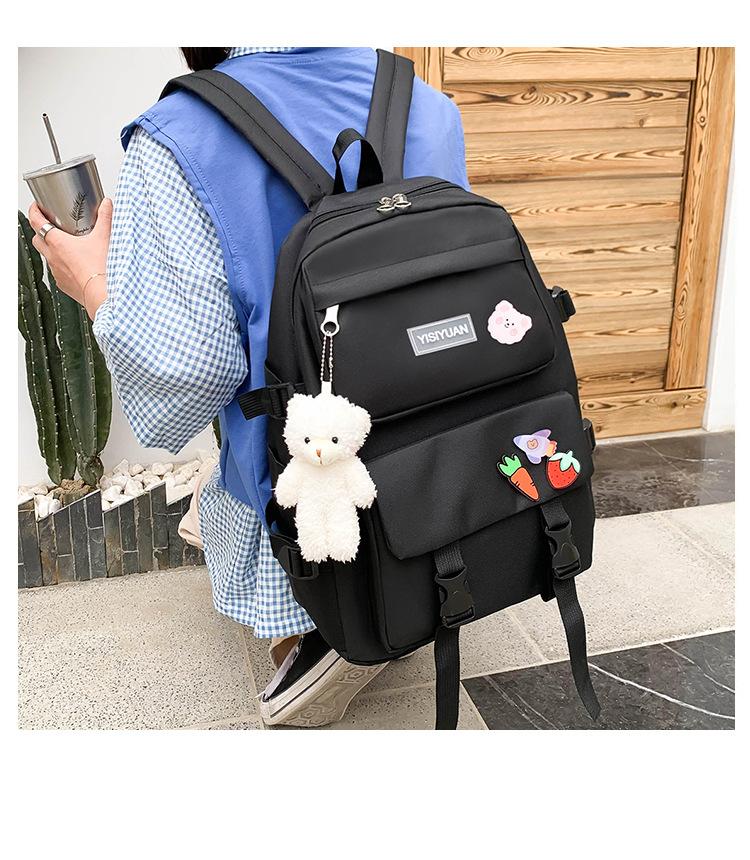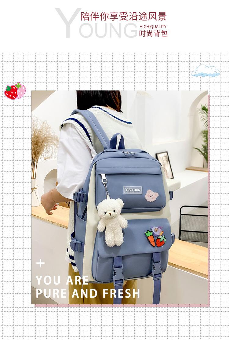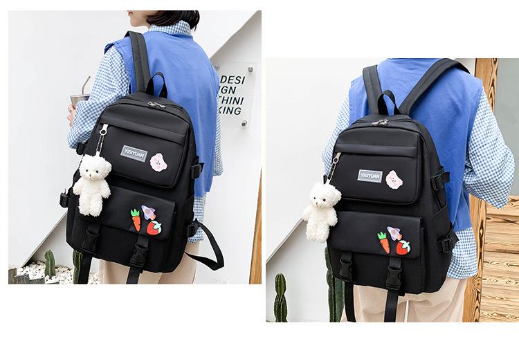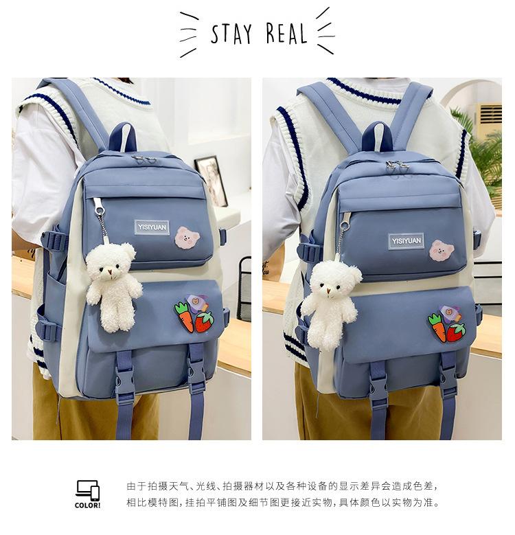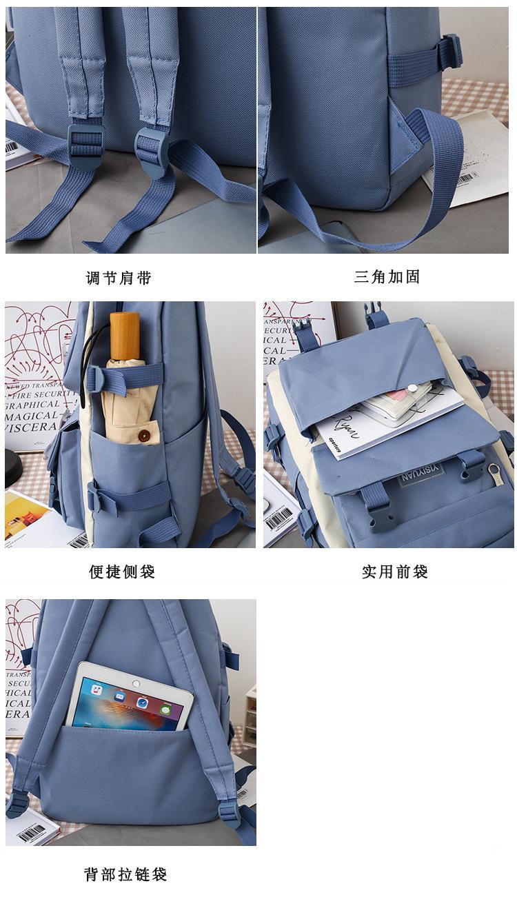 Nueva mochila de lona para mujer, estilo coreano Harajuku, mochila escolar de cinco piezas de gran capacidad, mochila para estudiantes universitarios, venta al por mayor