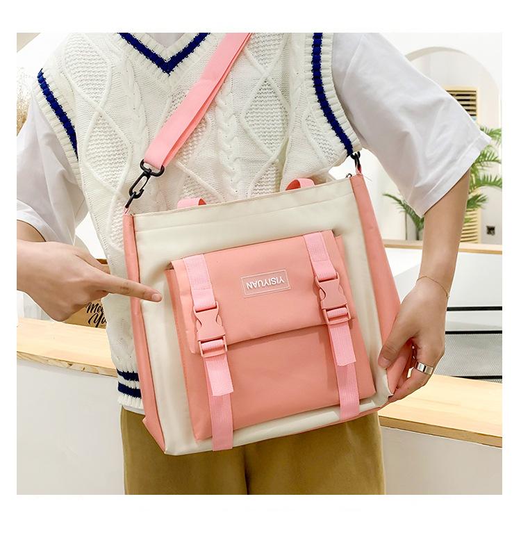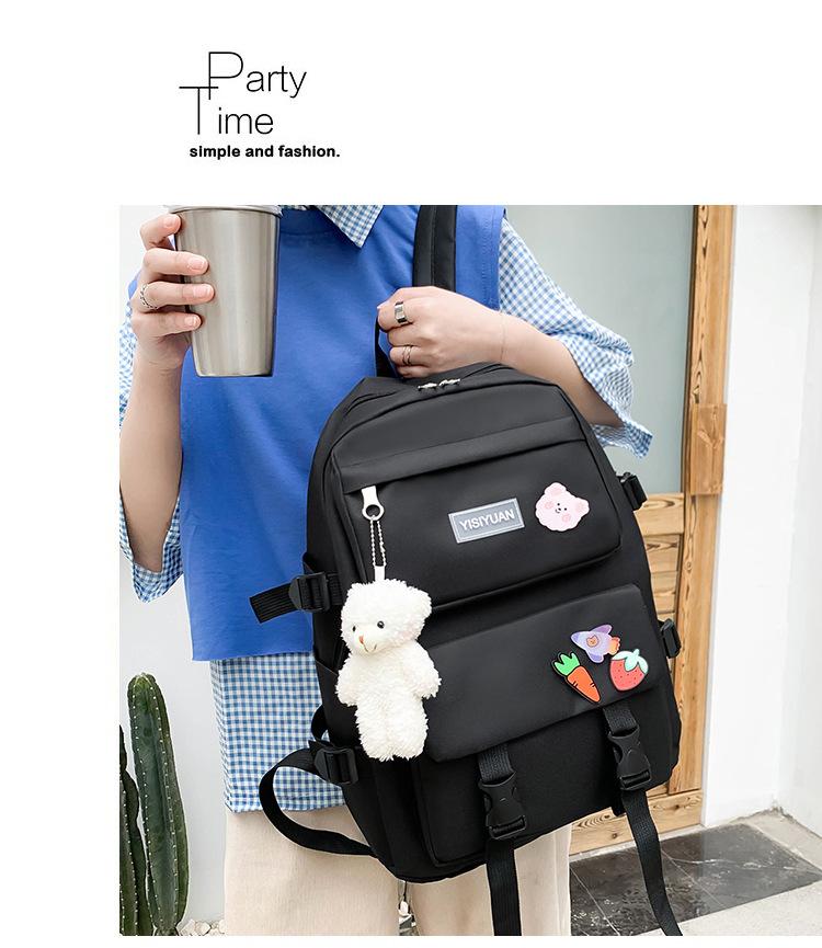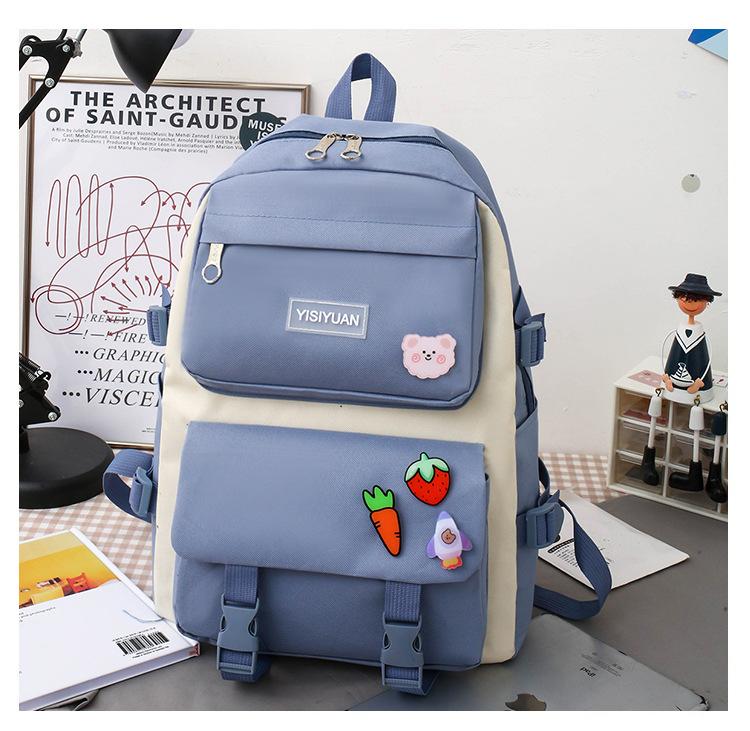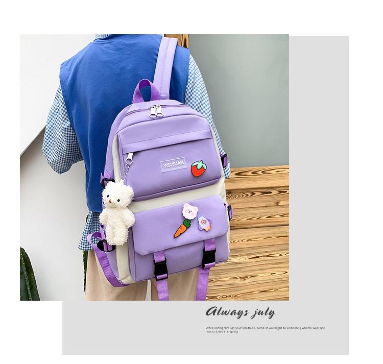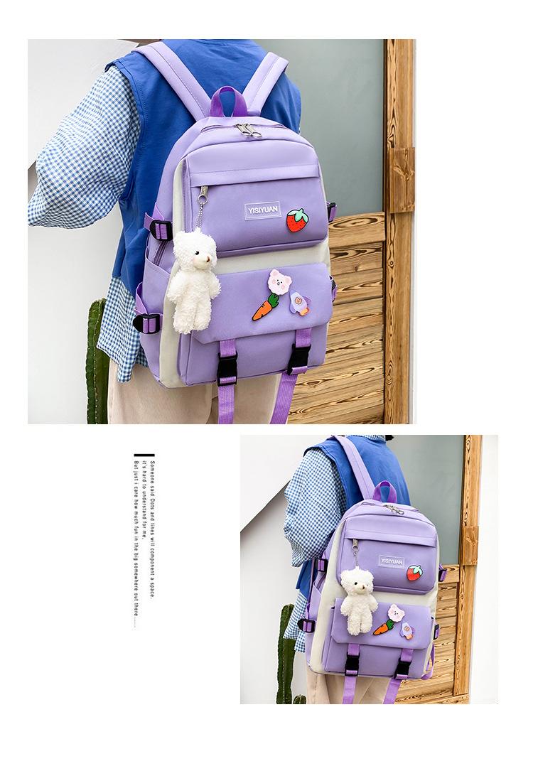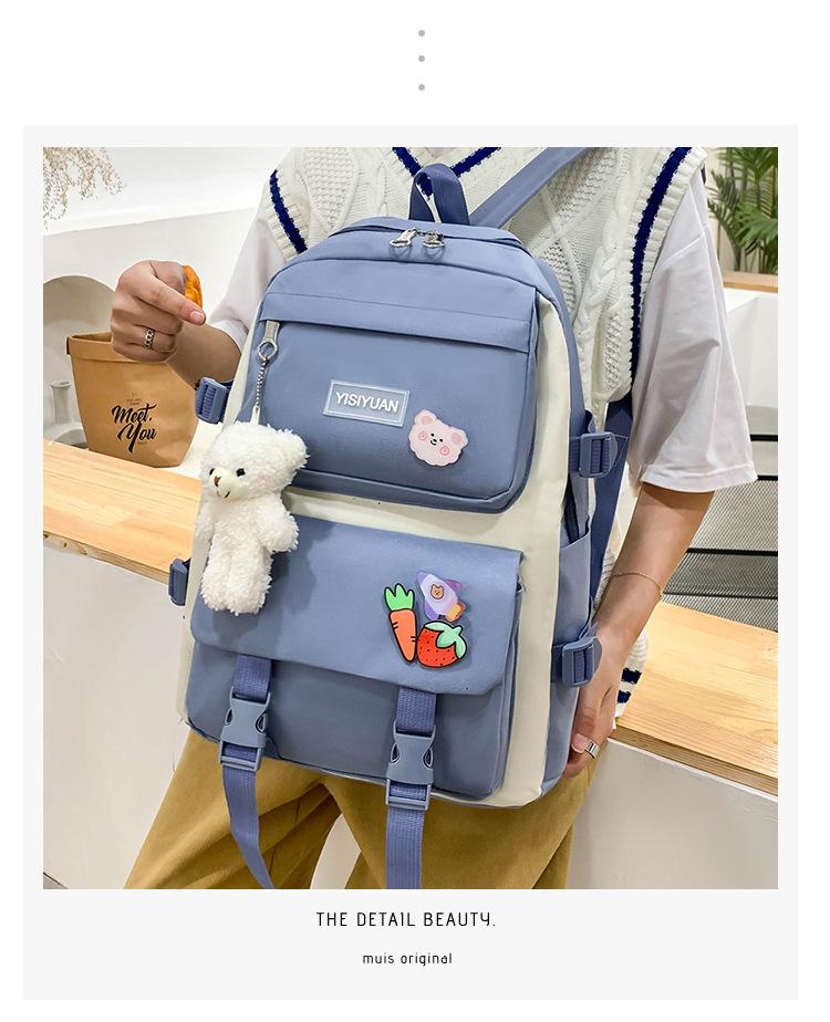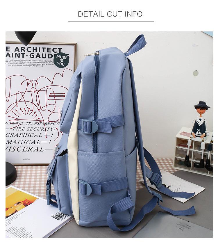 Nueva mochila de lona para mujer, estilo coreano Harajuku, mochila escolar de cinco piezas de gran capacidad, mochila para estudiantes universitarios, venta al por mayor