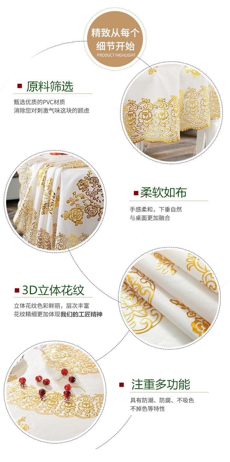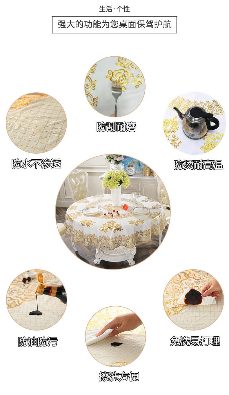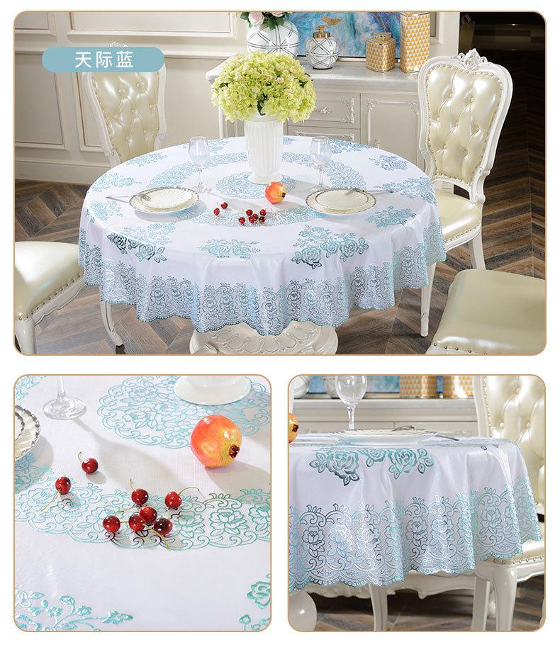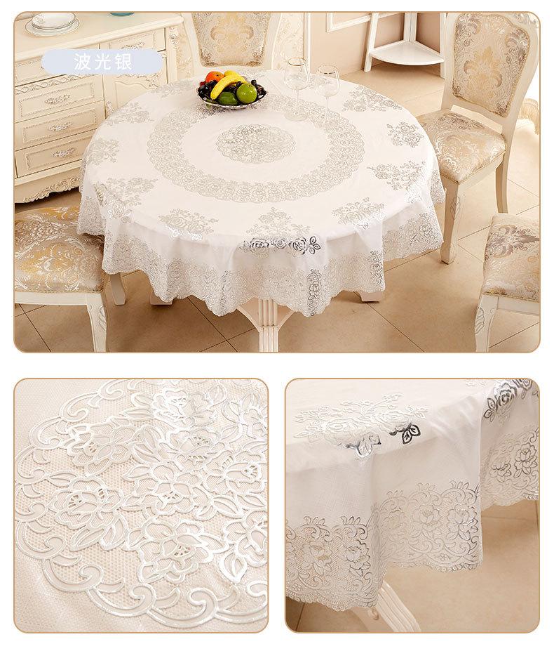 Mantel de Encaje Europeo Estampado en Caliente Pvc para el Hogar Impermeable y a Prueba de Aceite Mantel Redondo para Hotel Mantel Redondo Engrosado y Anti-Escaldante