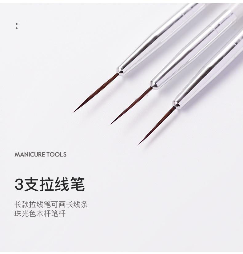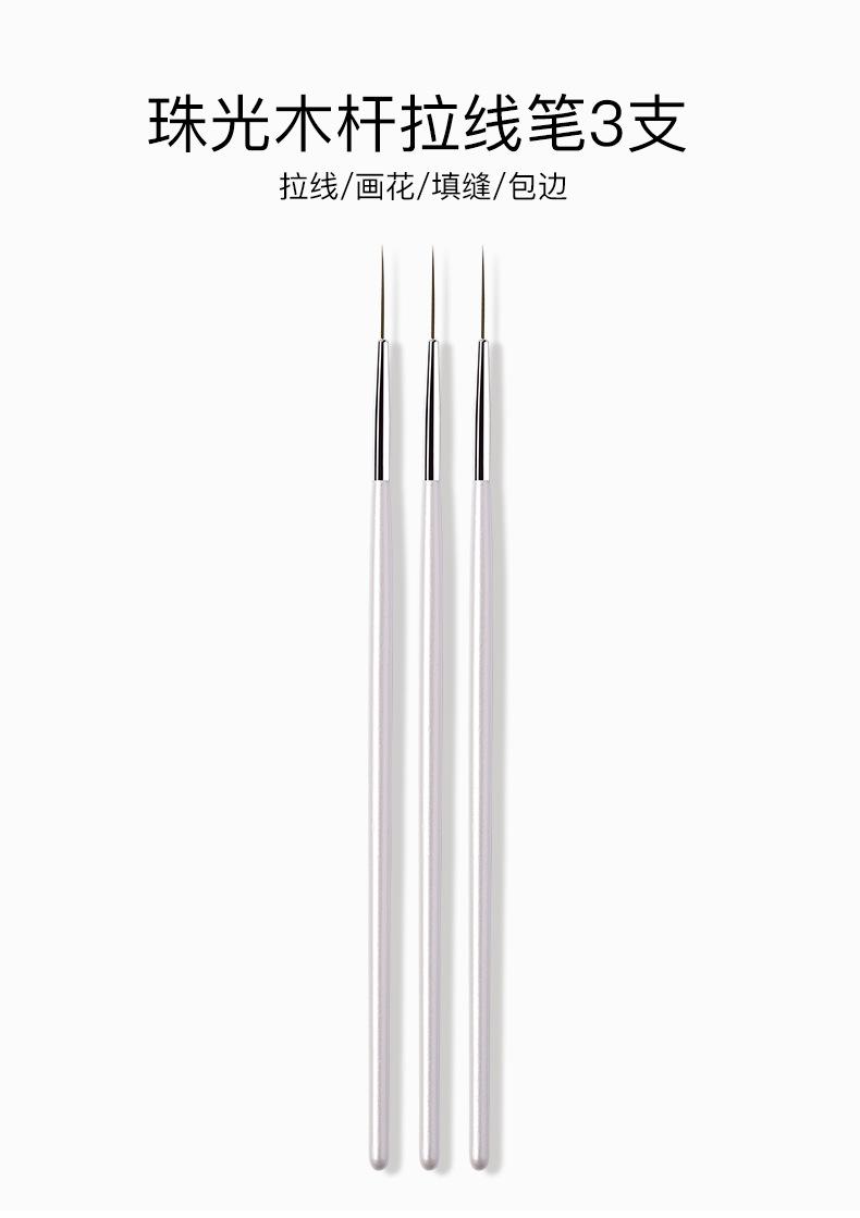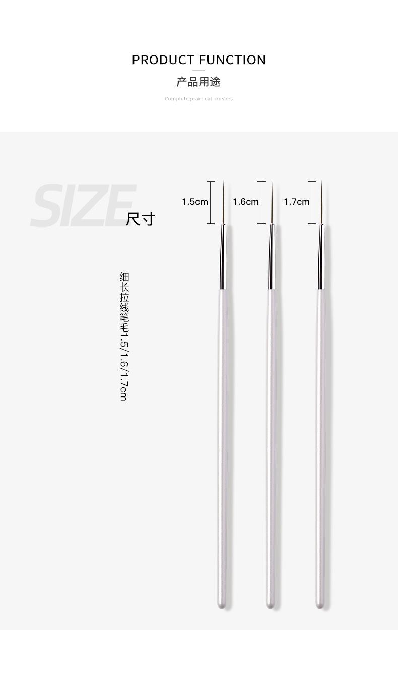 Herramientas de arte de uñas tira línea Pluma blanco nacarado Varilla delgada juego de plumas para uñas 3 piezas pluma para pintar líneas venta al por mayor