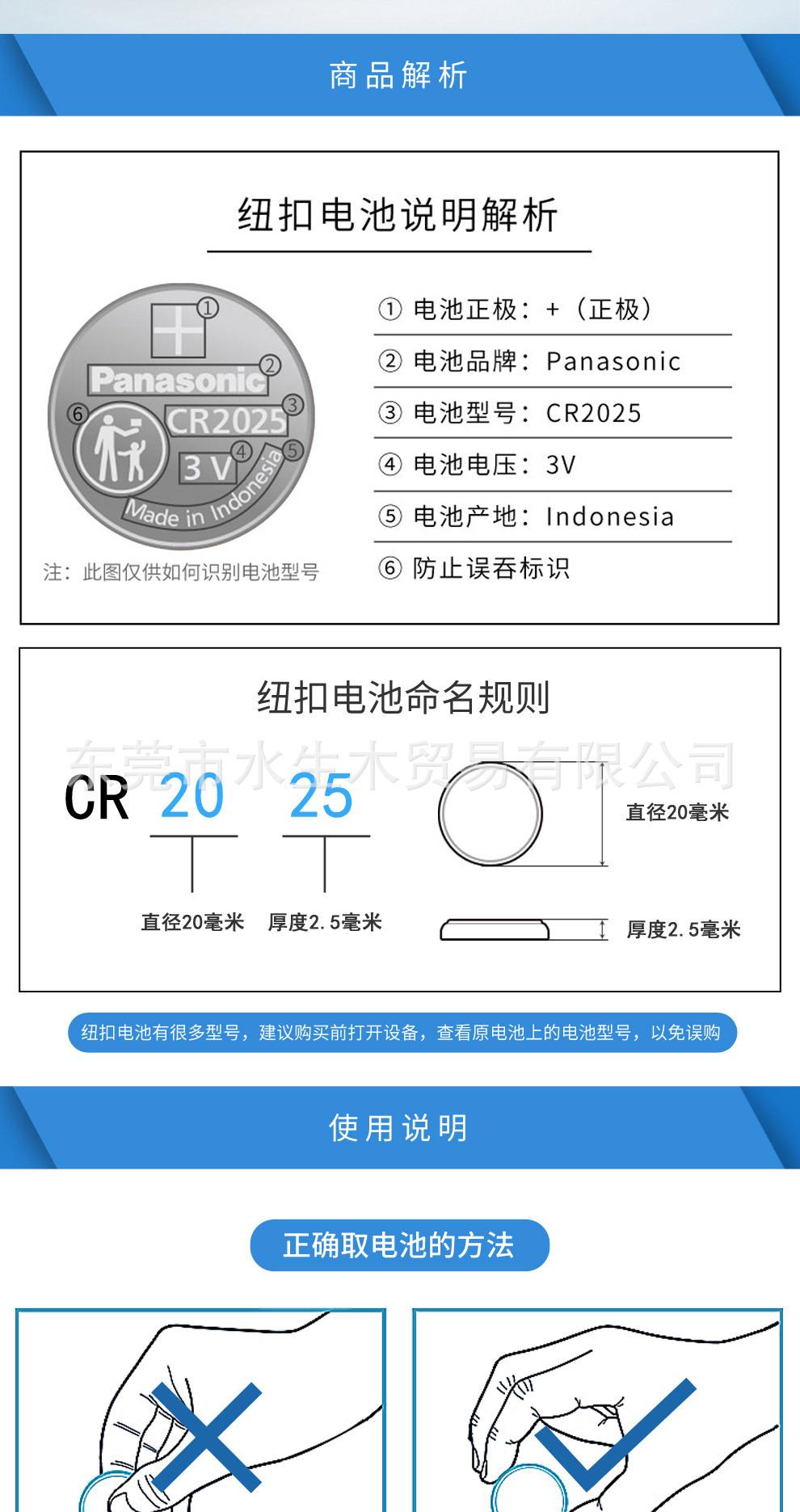 Batería de botón Panasonic CR2025 original genuina importada control remoto de coche báscula electrónica gafas 3D litio electrónico 3V