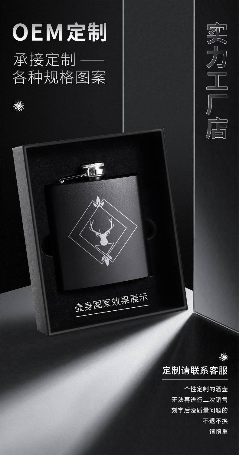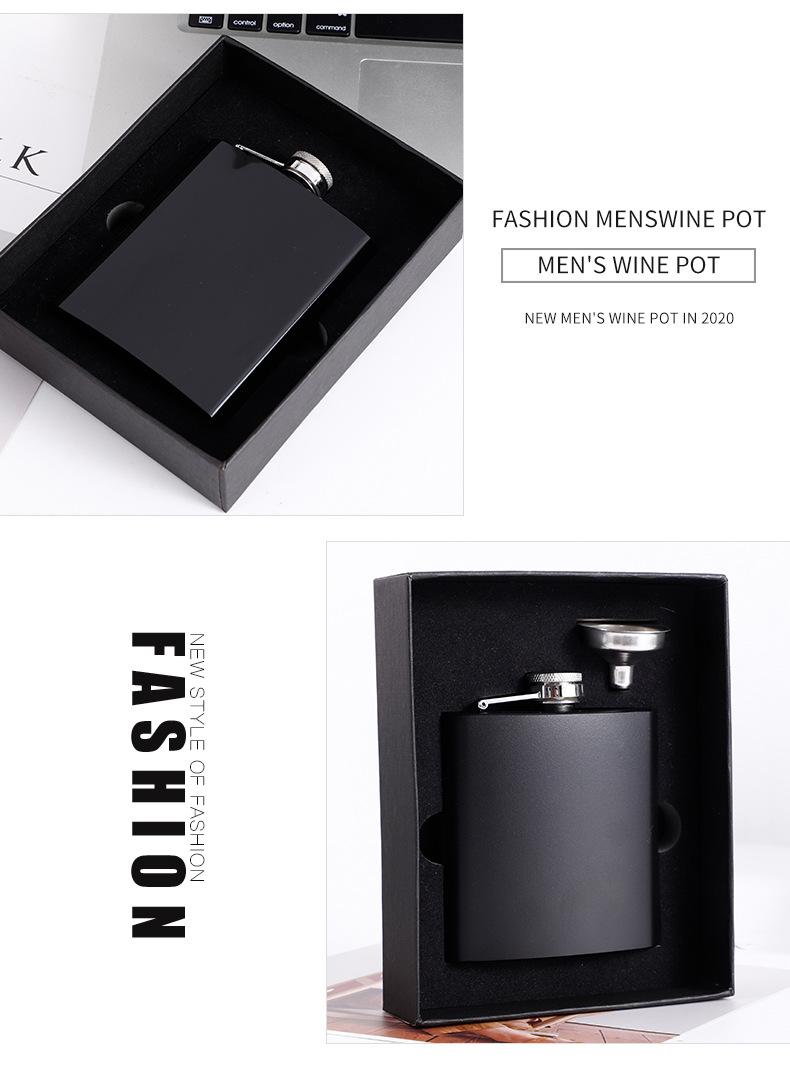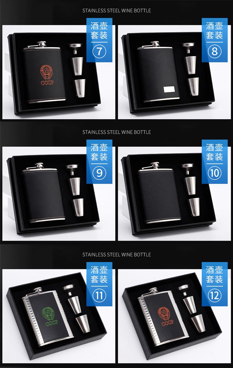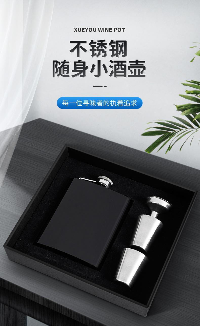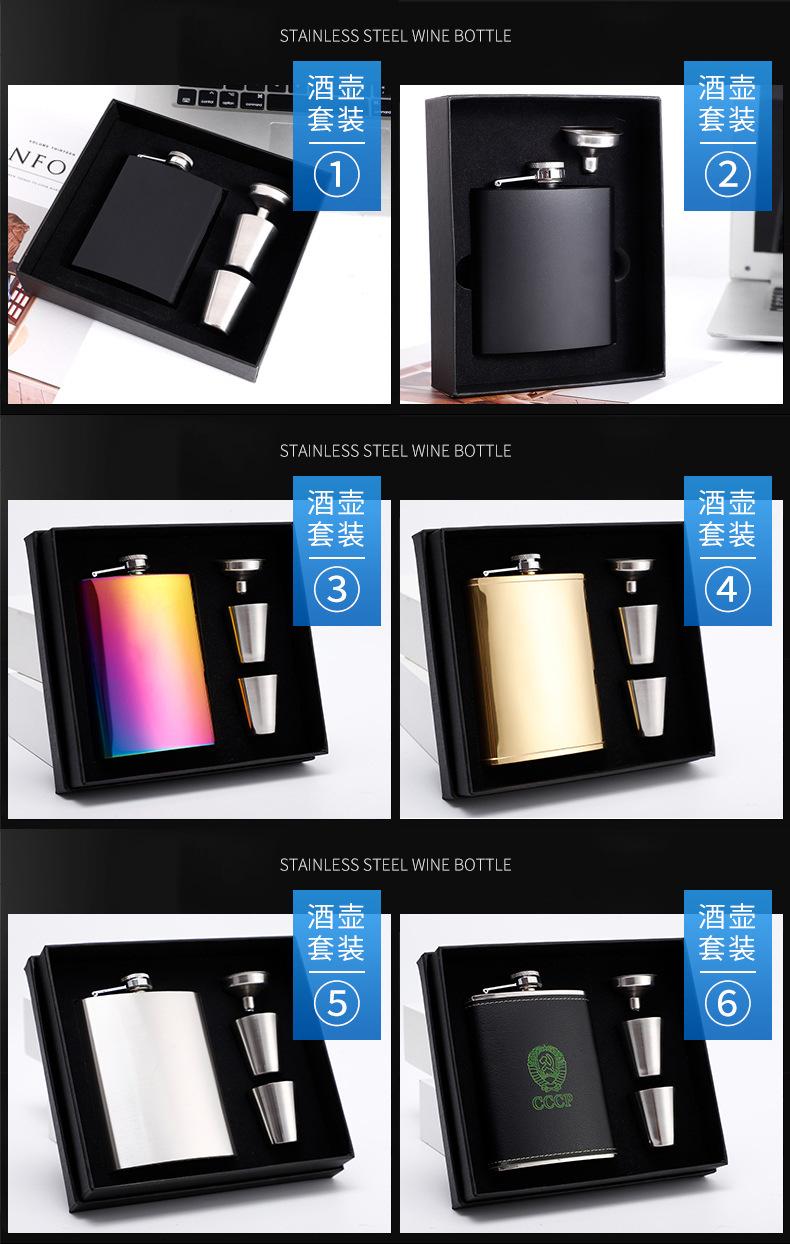 Juego de vino al por mayor de fábrica, jarra de vino de acero inoxidable, botella de vino portátil de 8 oz, color negro, plateado y marrón