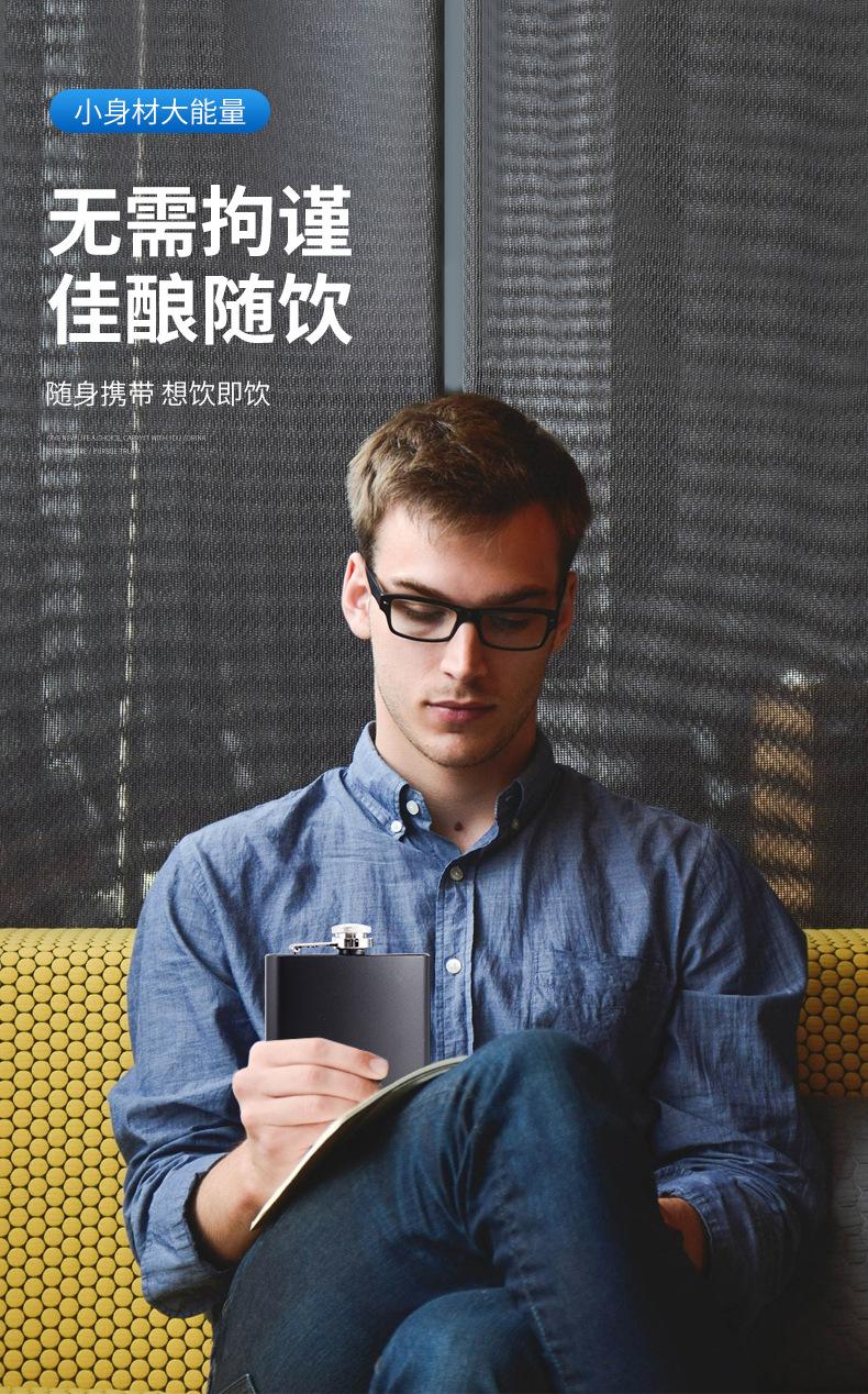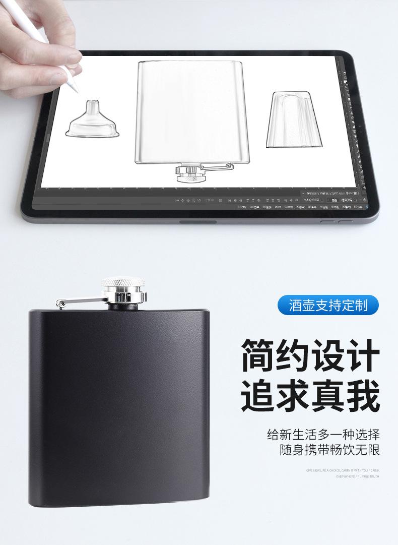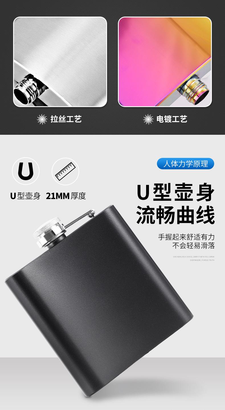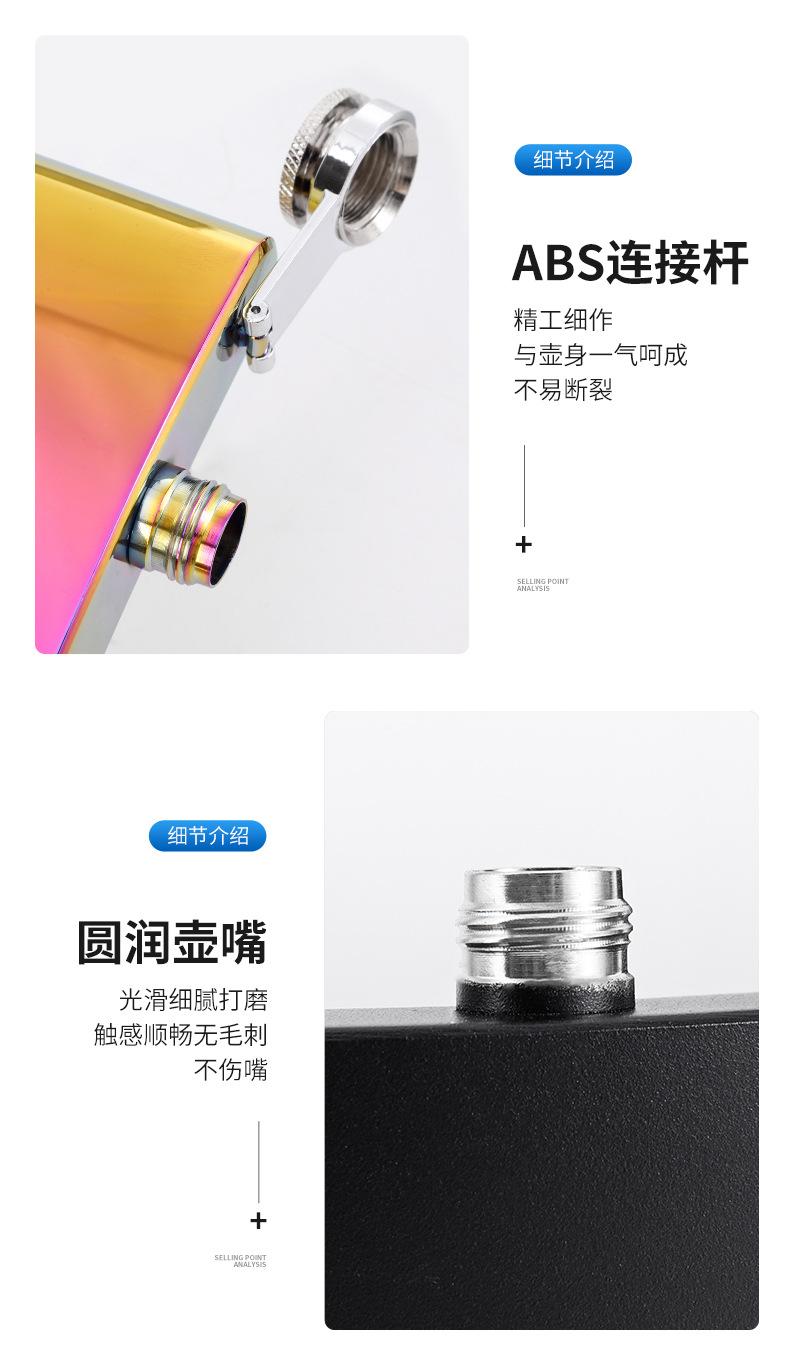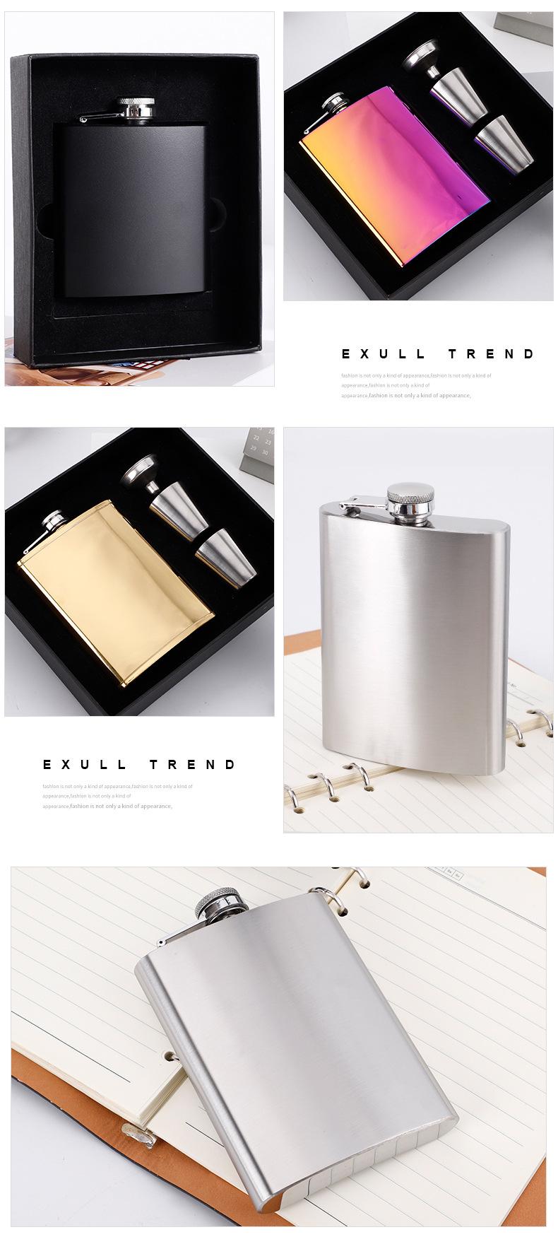 Juego de vino al por mayor de fábrica, jarra de vino de acero inoxidable, botella de vino portátil de 8 oz, color negro, plateado y marrón