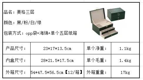 Dark green three layers; 23.5*17.5*13.5cm, White large three layers; 23.5*17.5*13.5cm, Black large three layer...
