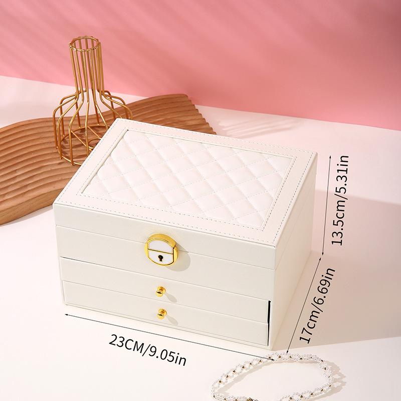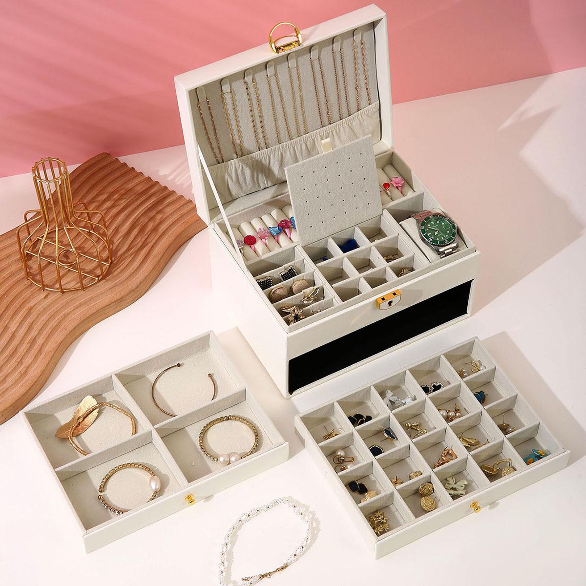 Caja de Joyería Tipo Cajón de Gran Capacidad Multicapa Retro de Cuero PU Caja de Almacenamiento de Joyería para Anillos Collares Aretes Joyería para Uñas