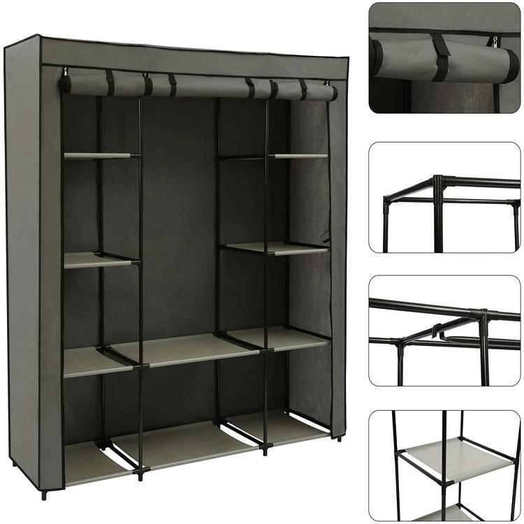Armario de tela simple, precio especial, armario de tela, montaje de tubo de acero, marco de acero reforzado, gabinete de almacenamiento moderno simple, suministro directo de fábrica