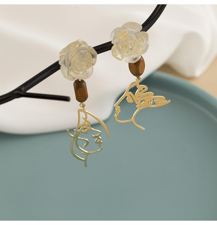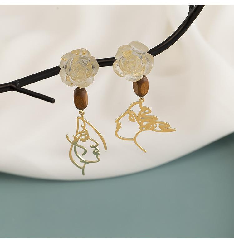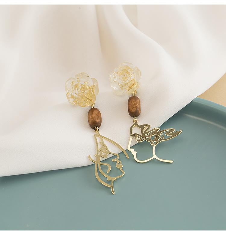 Pendientes de rosa retro francesa con cara asimétrica, de moda, de alta calidad, con espiral antimosquitos y clip para la oreja sin perforaciones para mujer