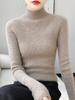 Suéter de lana pura para mujer, corte ajustado, cuello alto medio, sin costuras, suéter de cachemira integrado, camisa base, ropa de mujer transfronteriza al por mayor