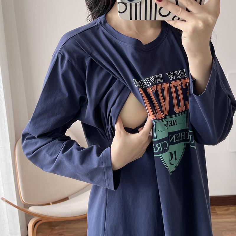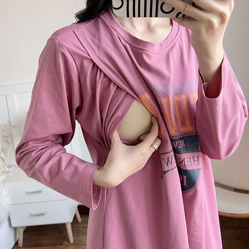Vestido de lactancia de verano, fino, de manga larga, para uso exterior, ropa de maternidad para mamás calientes, ropa de lactancia, camisón de primavera y otoño