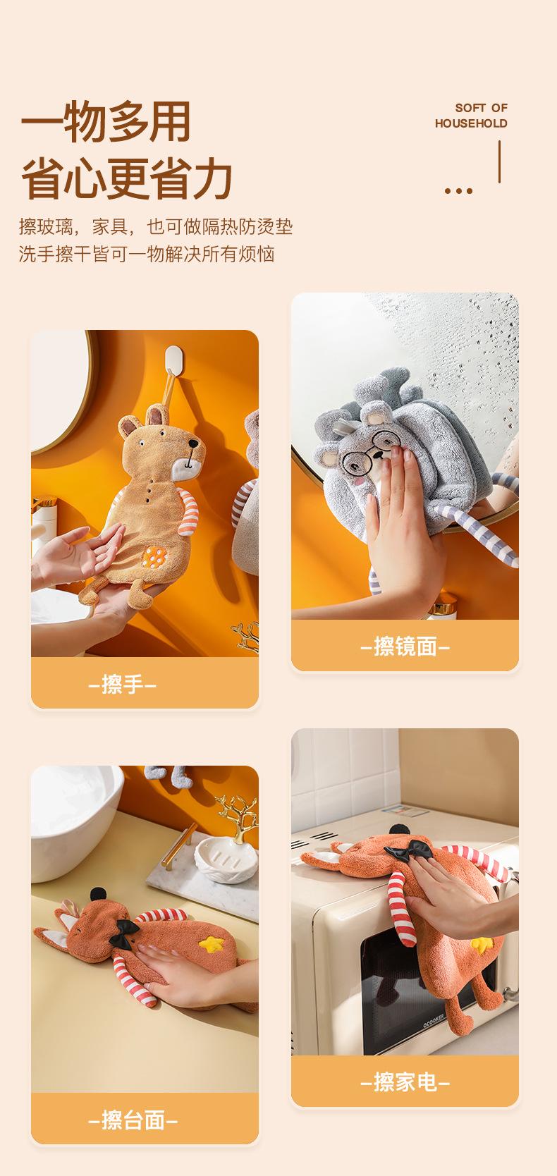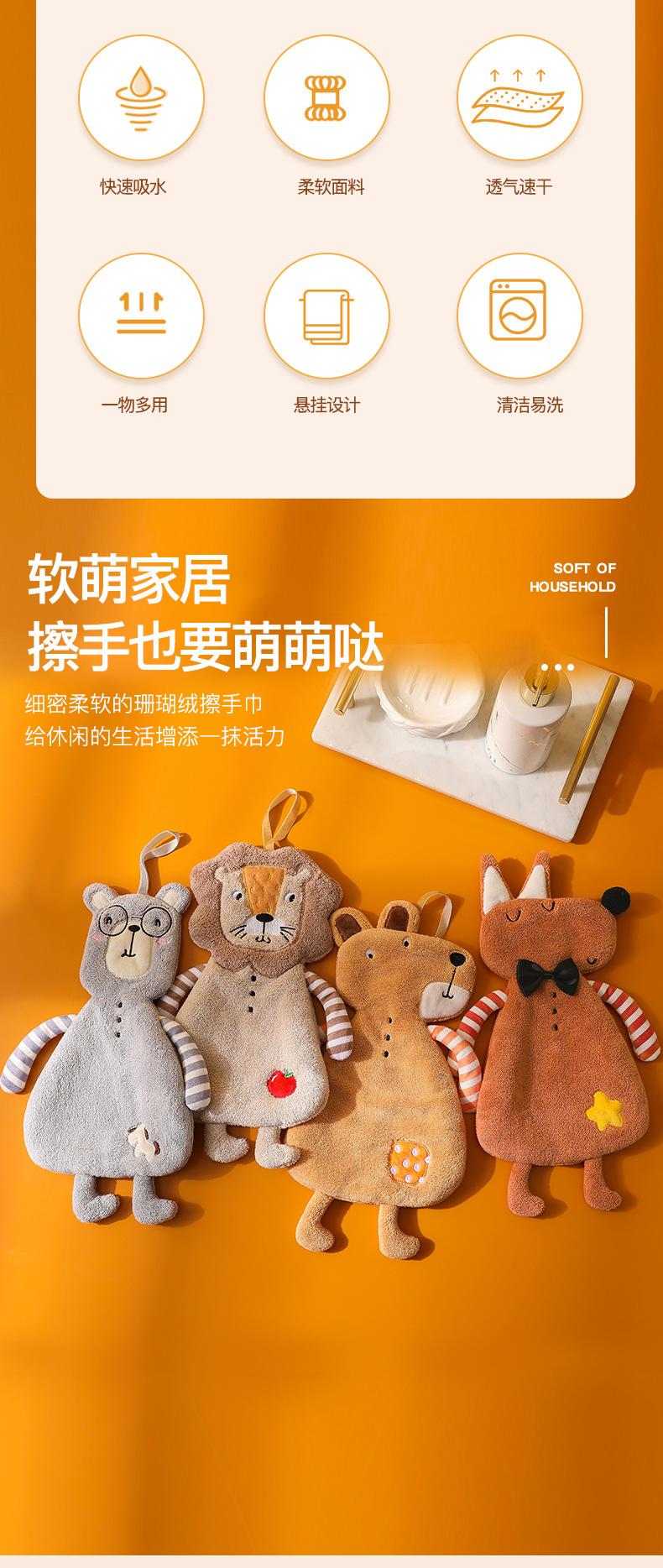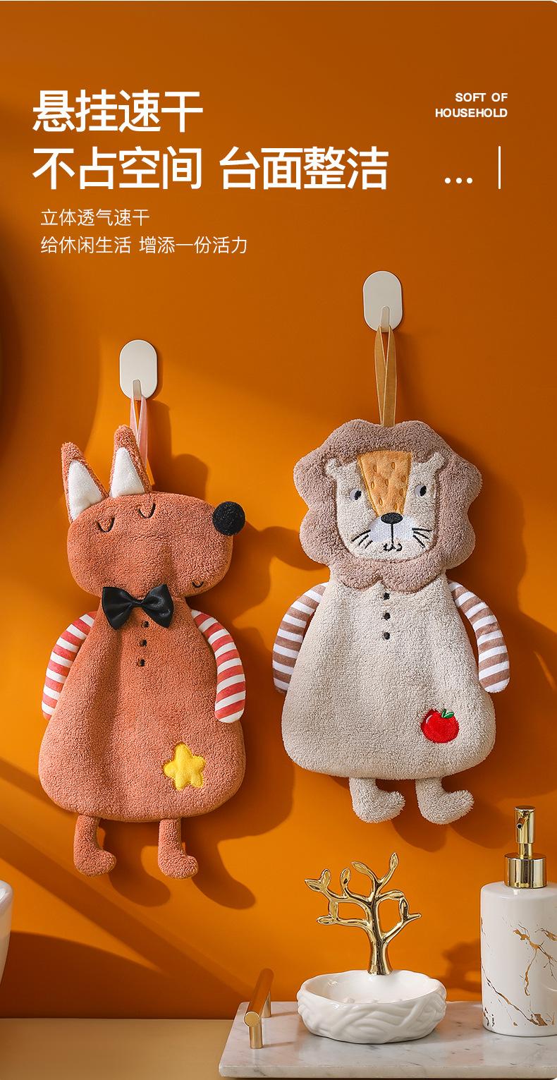 Toalla de Mano de Animal Lindo, Toalla de Mano Colgante de Vellón Coral Espesado, Absorbente y de Secado Rápido, para Baño, Cocina y Uso Doméstico