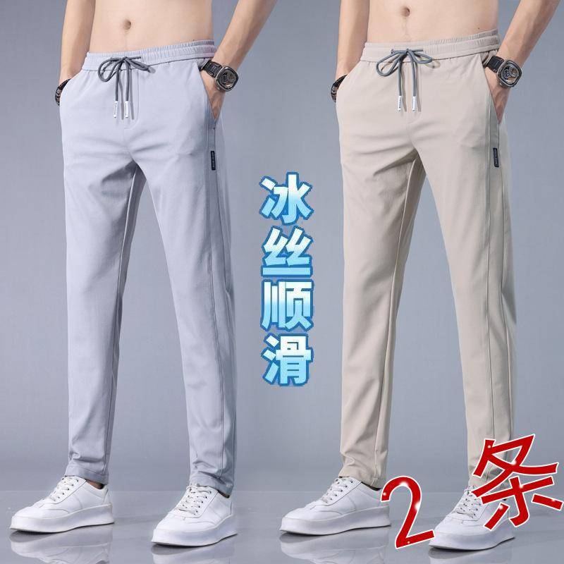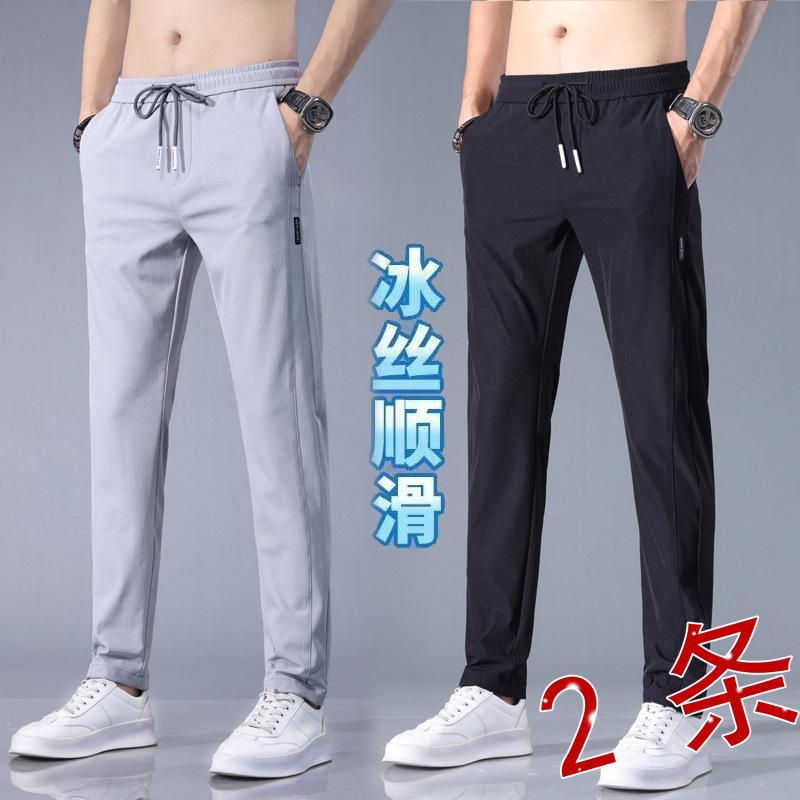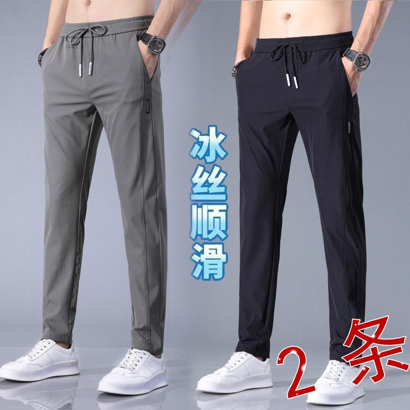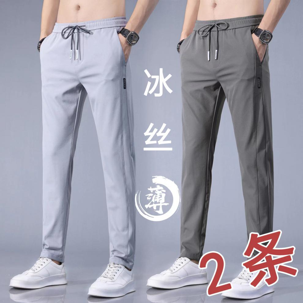 Pantalones casuales de verano de seda fina de hielo de secado rápido para hombre, pantalones deportivos holgados para hombre, nueva moda 2023