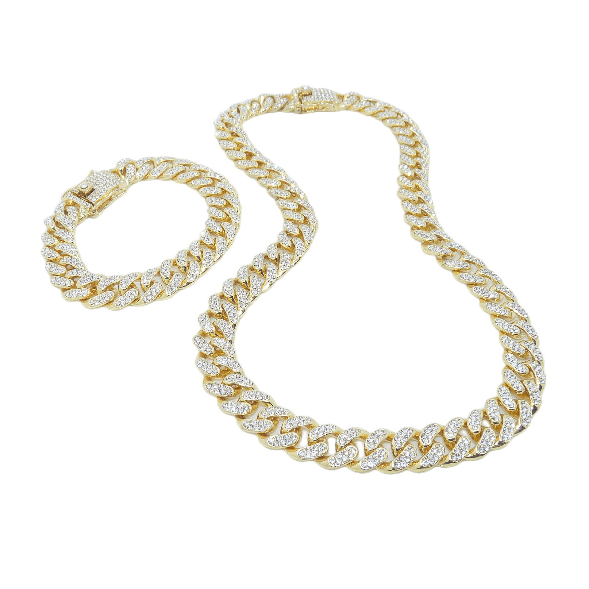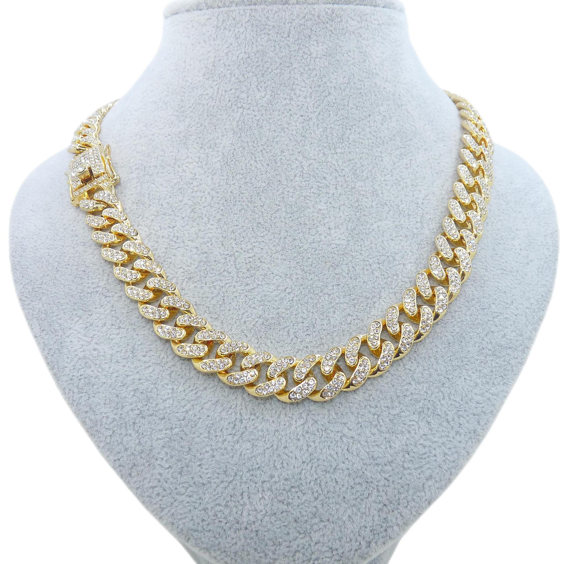 Collar cubano de diamantes completo, pulsera con cuello estilo hip hop, personalidad para hombres y mujeres, collar cubano de moda, traje, cadena cubana