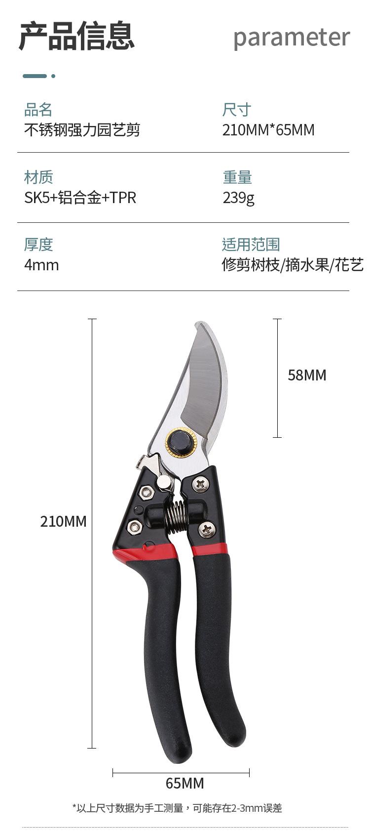 Tijeras de podar de acero con alto contenido de carbono SK5 para jardinería, tijeras de acero inoxidable engrosadas para injertar árboles frutales y recoger ramas gruesas.
