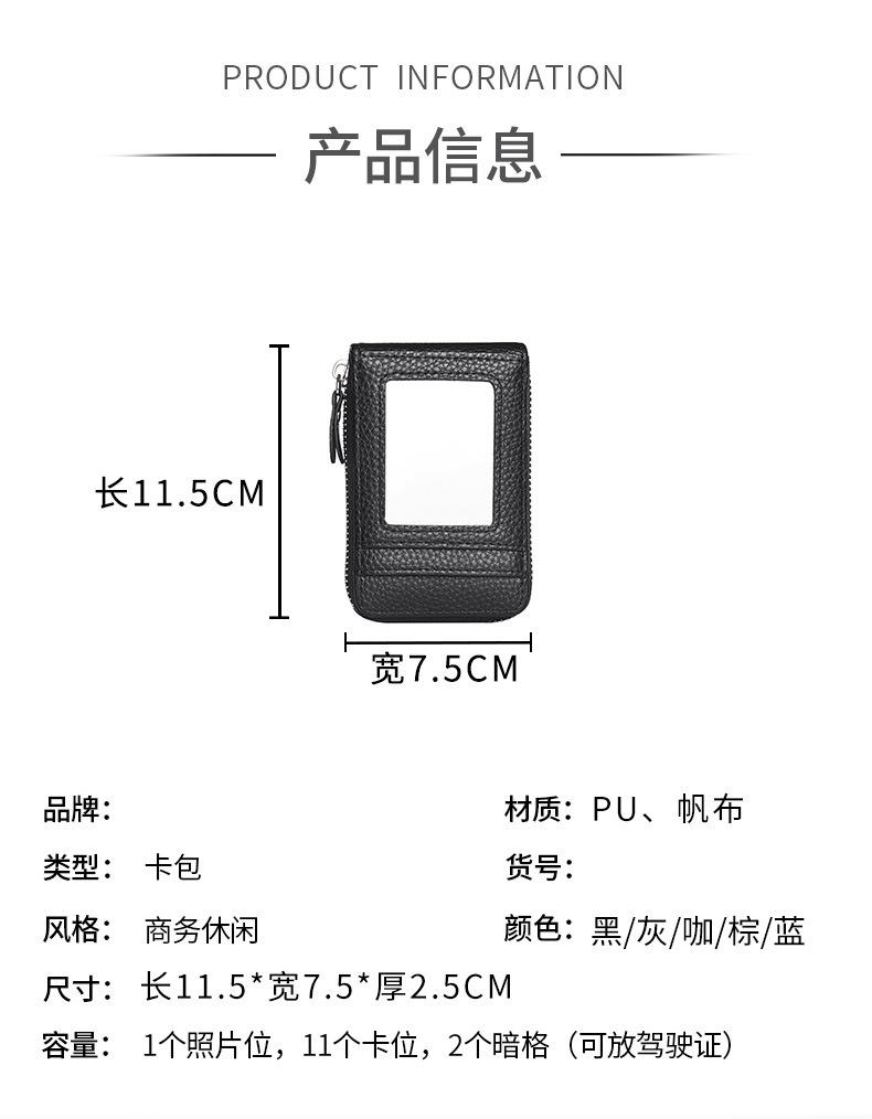 Tarjetero transfronterizo para hombre, pequeño, sencillo, con múltiples tarjetas, con cremallera, monedero, certificado, tarjetero vertical