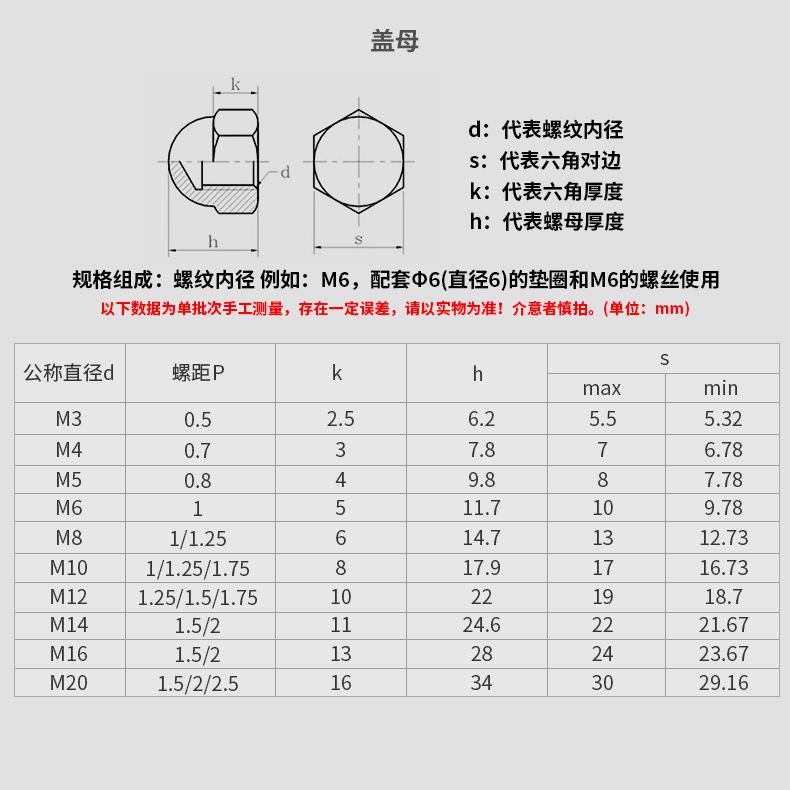 Tuerca Ciega Tuerca Tapa Acero Inoxidable 201 Acero Inoxidable 304 Niquelado Cinc Blanco Niebla Salina Tuerca Tapa M3M4M5