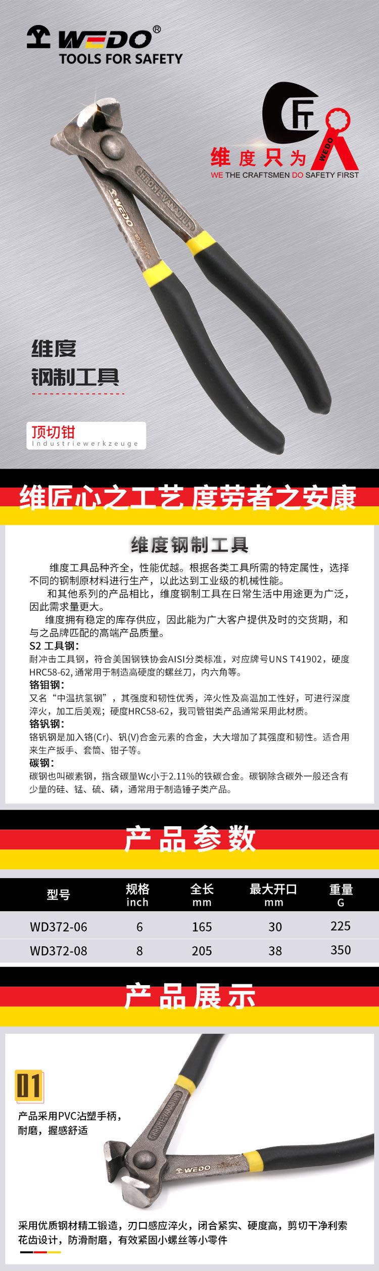 Alicates de corte superior de acero al cromo vanadio de dimensión WEDO, alicates para extraer clavos, alicates de corte superior de acero de grado industrial, suministro directo de fábrica