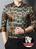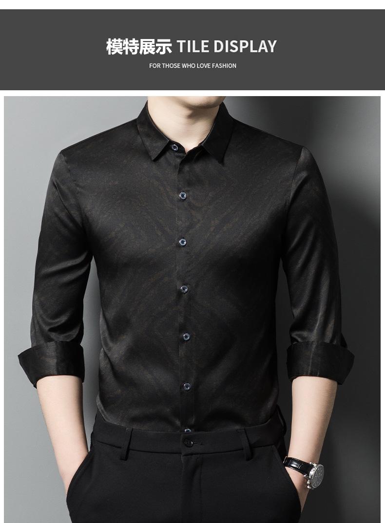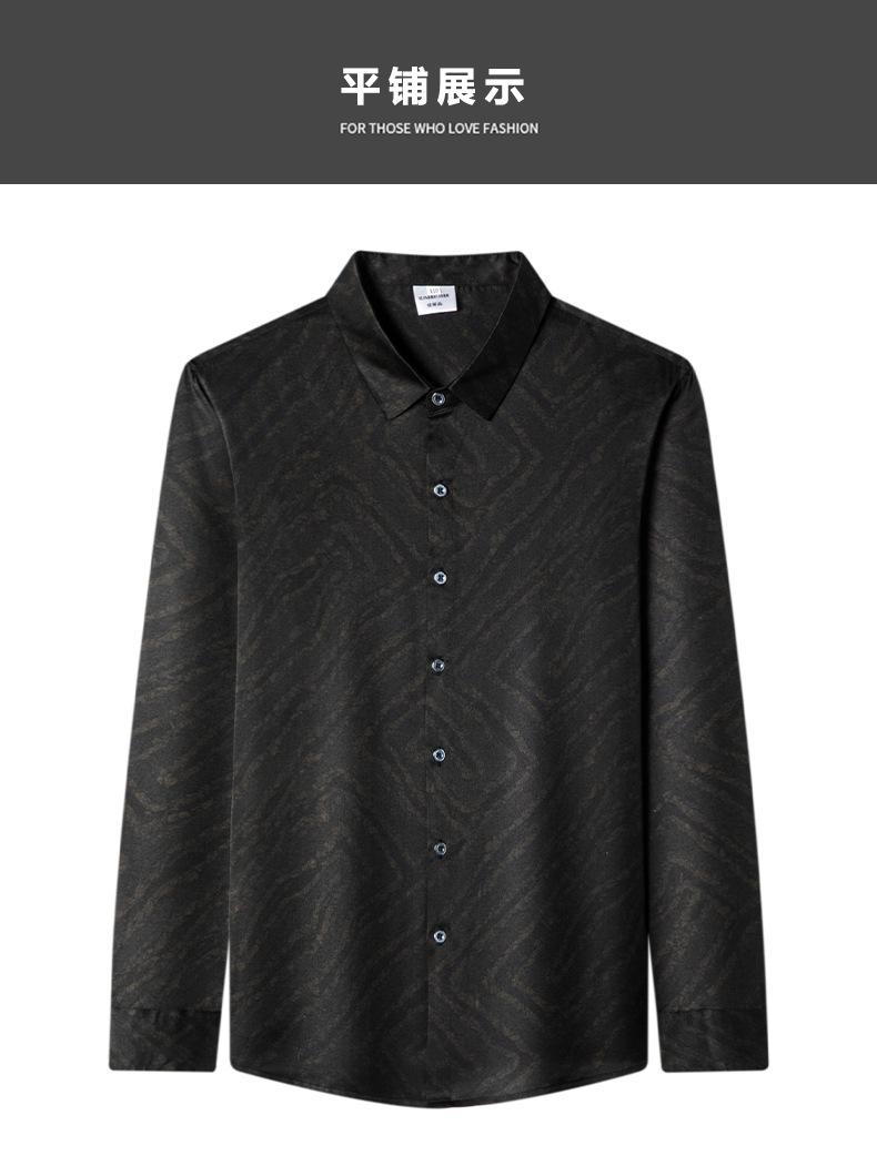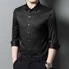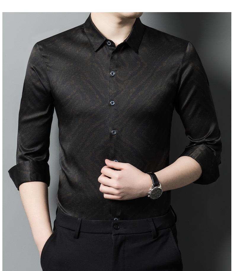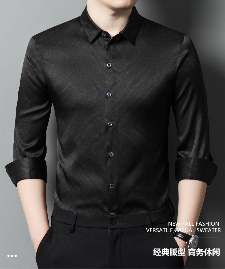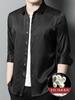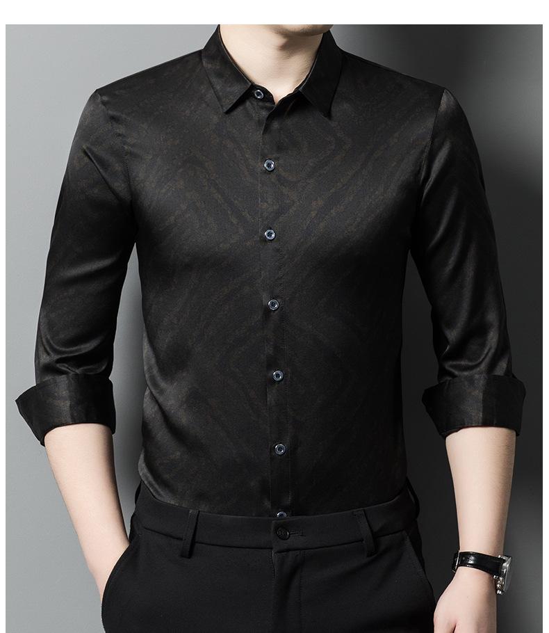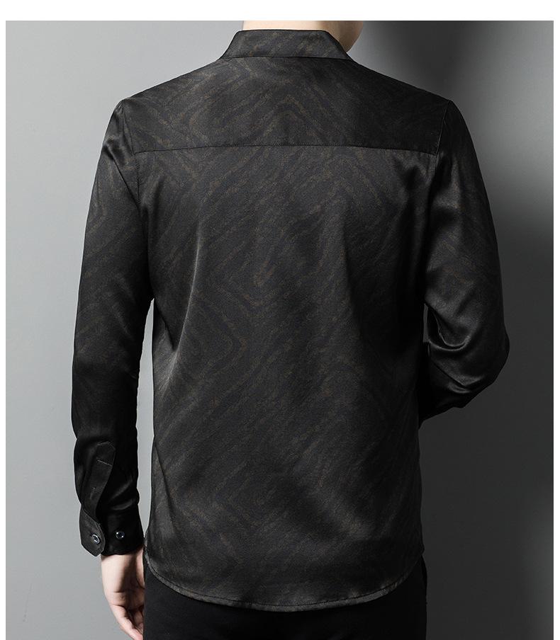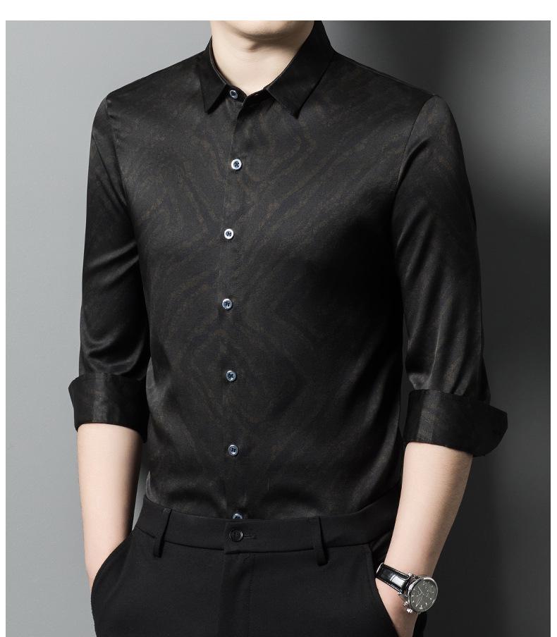 Camisa de Seda de Alta Gama de Manga Larga 2025 Nueva Camisa de Seda de Morera Papá de Mediana Edad Lujo Accesible Patrón Oscuro Top Delgado para Hombre