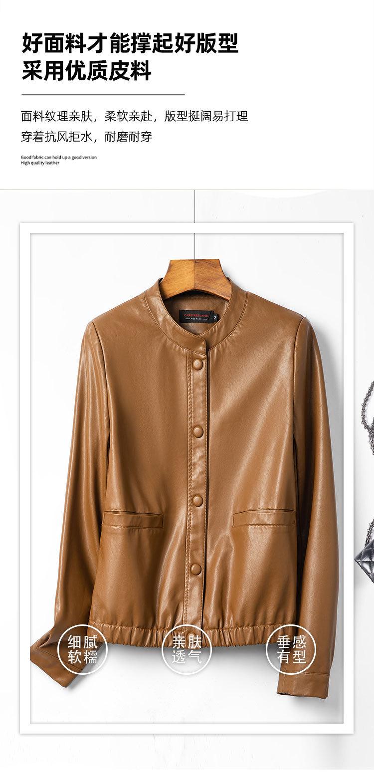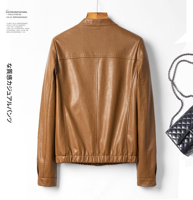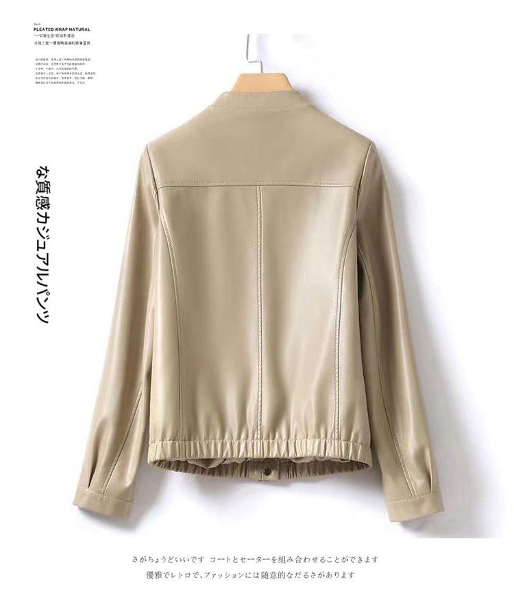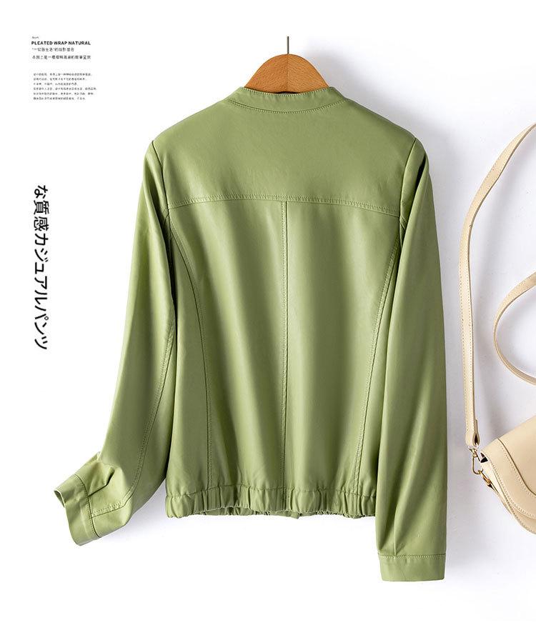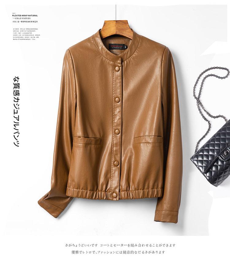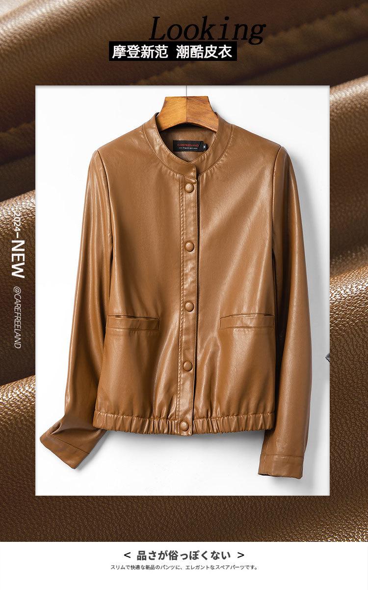 Chaqueta de Cuero Otoño 2024 Kafu Landi para Mujer, Chaqueta Corta de Cuero, Corte Holgado, Adelgazante, Chaqueta Casual Versátil para Mujer