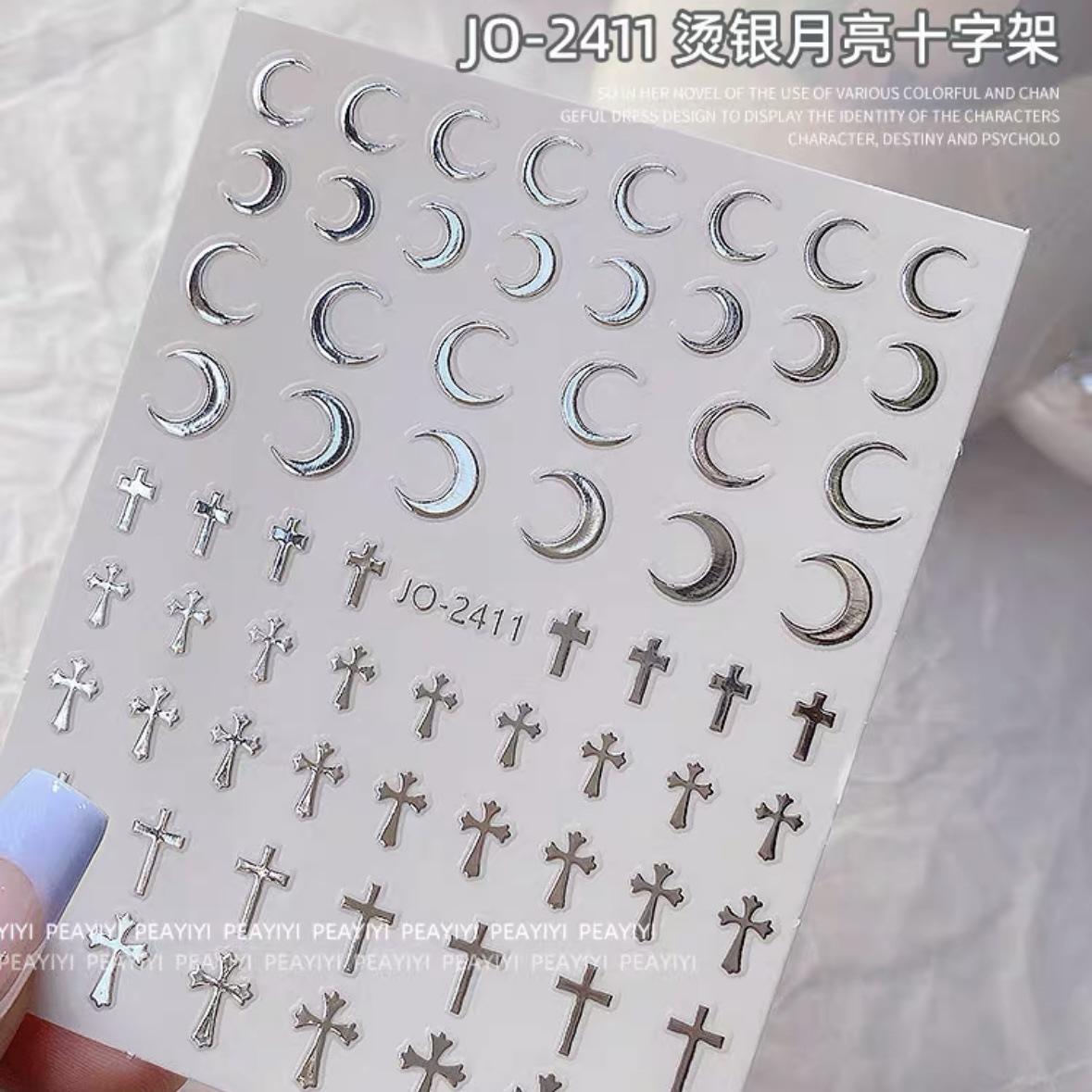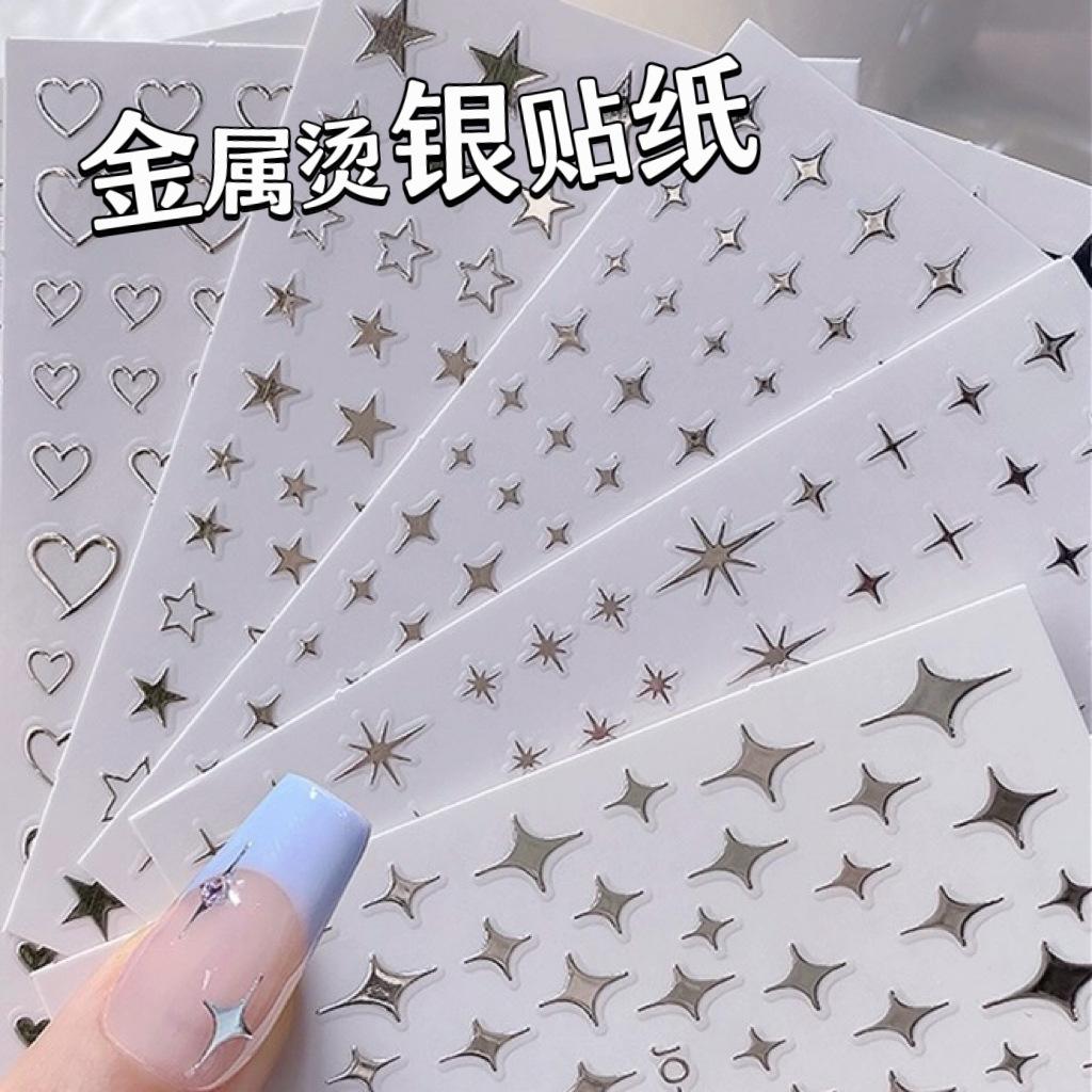Popular celebridad en línea metal repujado plata caliente hueco estrella creciente amor pegatinas de uñas decoraciones accesorios para uñas