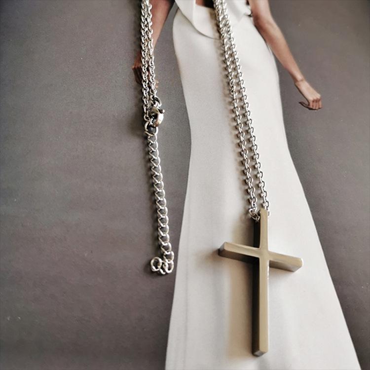 Personalidad hip-hop europea y americana simple acero de titanio versátil colgante de pareja moderno collar de cruz negra para hombre estilo frío para mujer
