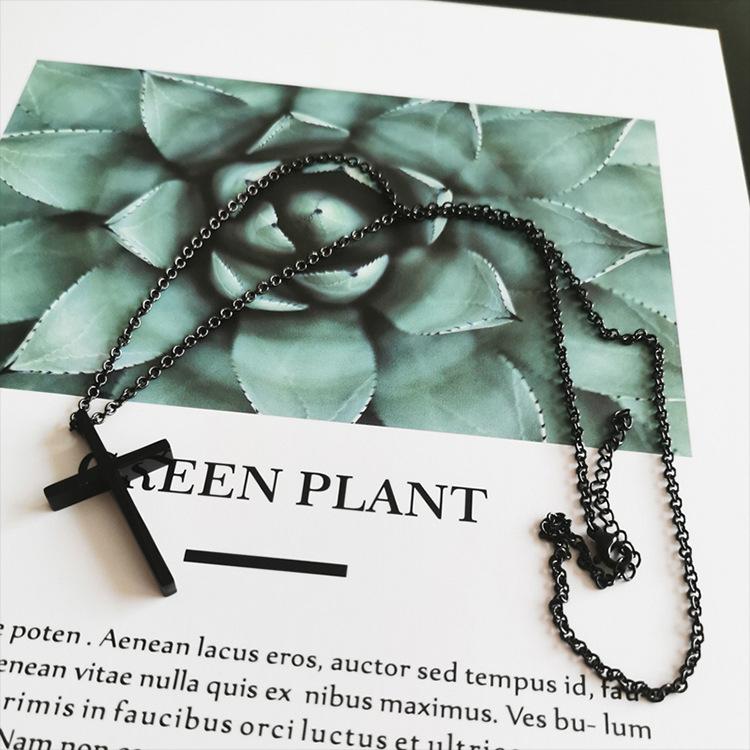 Collar de cruz negro para hombre a la moda, personalidad hip-hop, simple, acero de titanio, estilo frío para mujer, colgante de pareja versátil, joyería