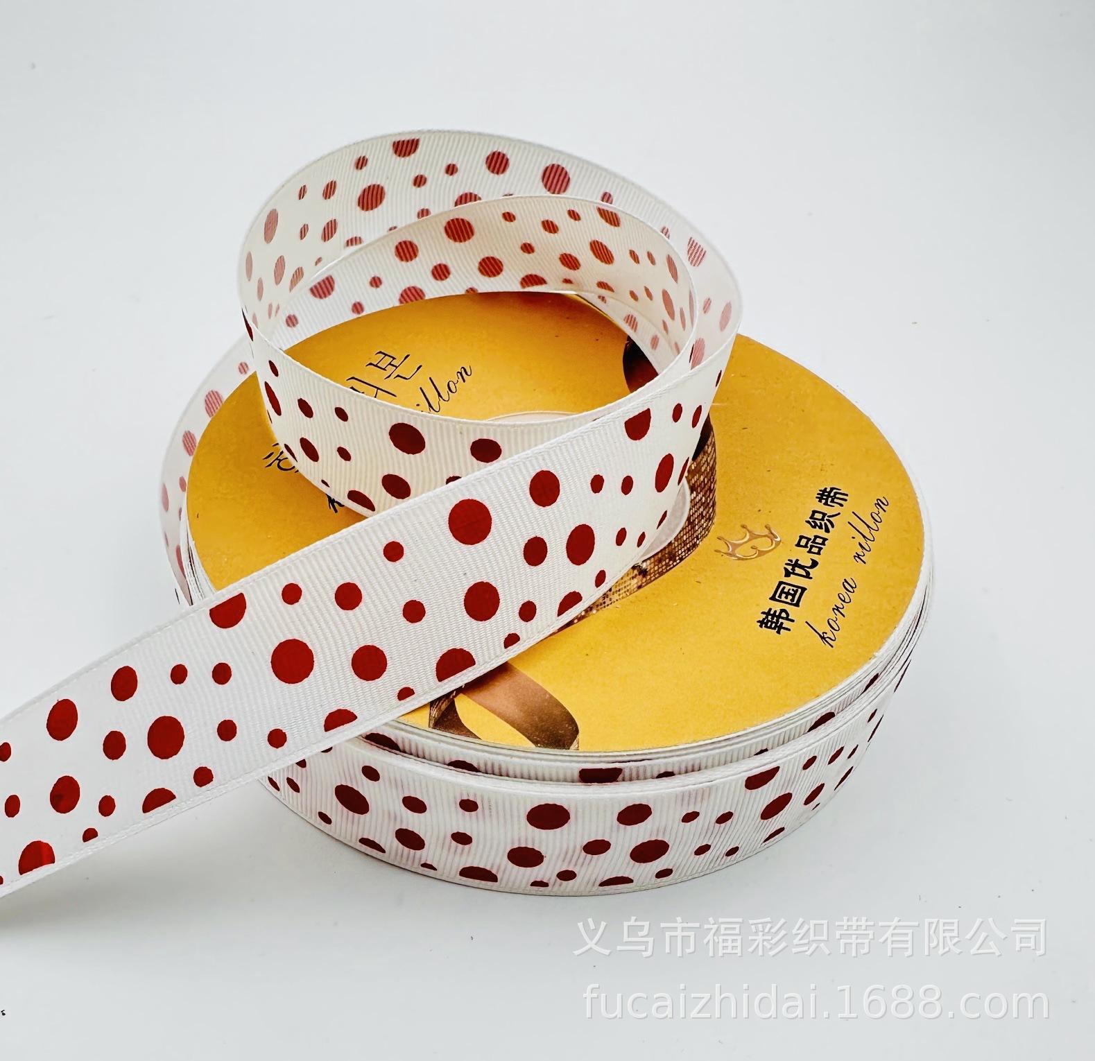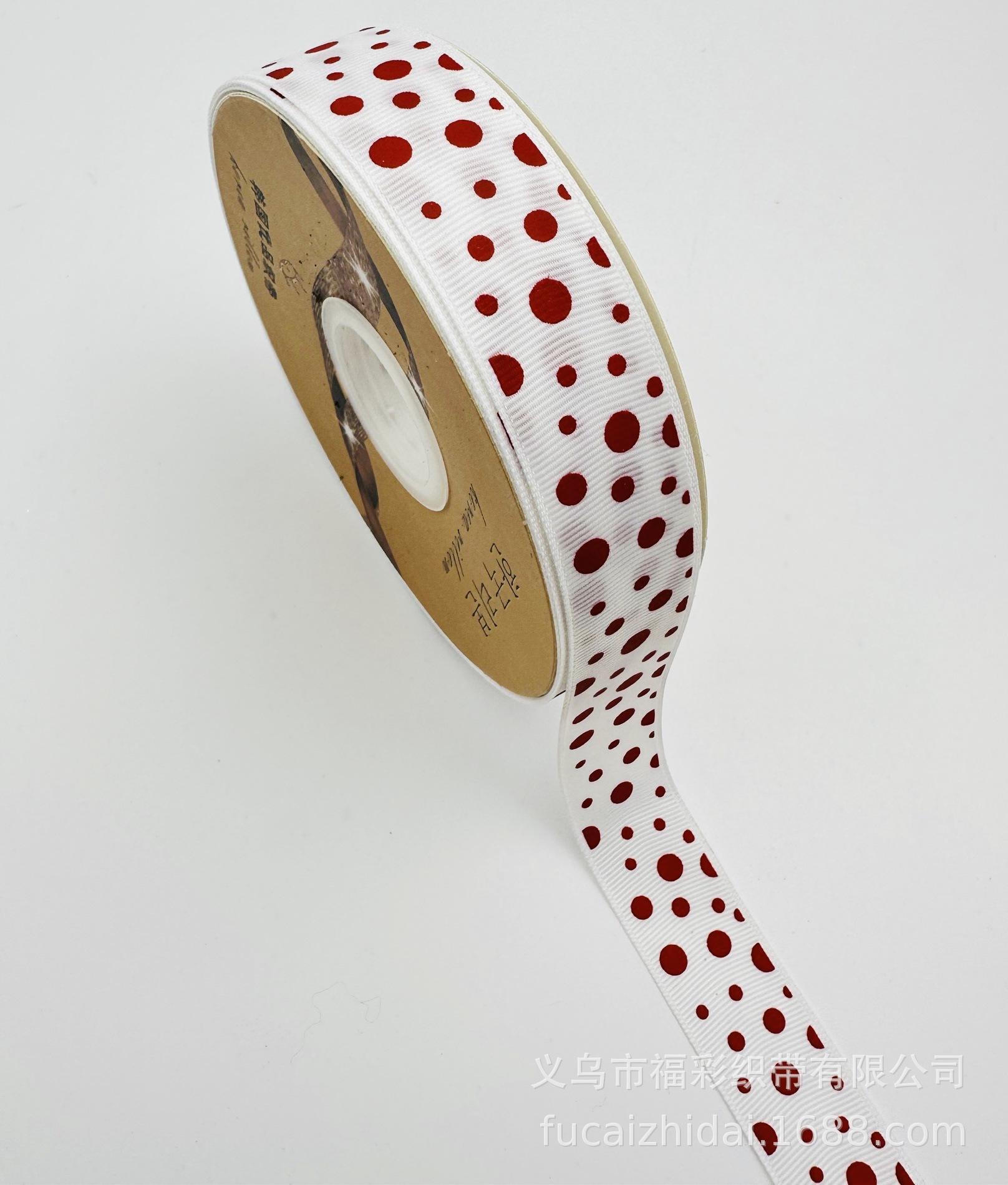 Cinta de nervadura blanca de 2,5 cm con estampado de puntos rojos y lazo con borde cruzado, cinta de embalaje para regalo
