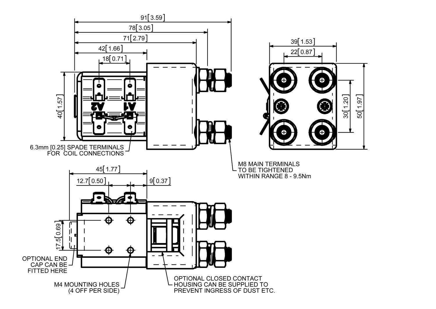 Caída de voltaje del contacto principal bajo carga de 100A Caída de voltaje de contacto a 100A |