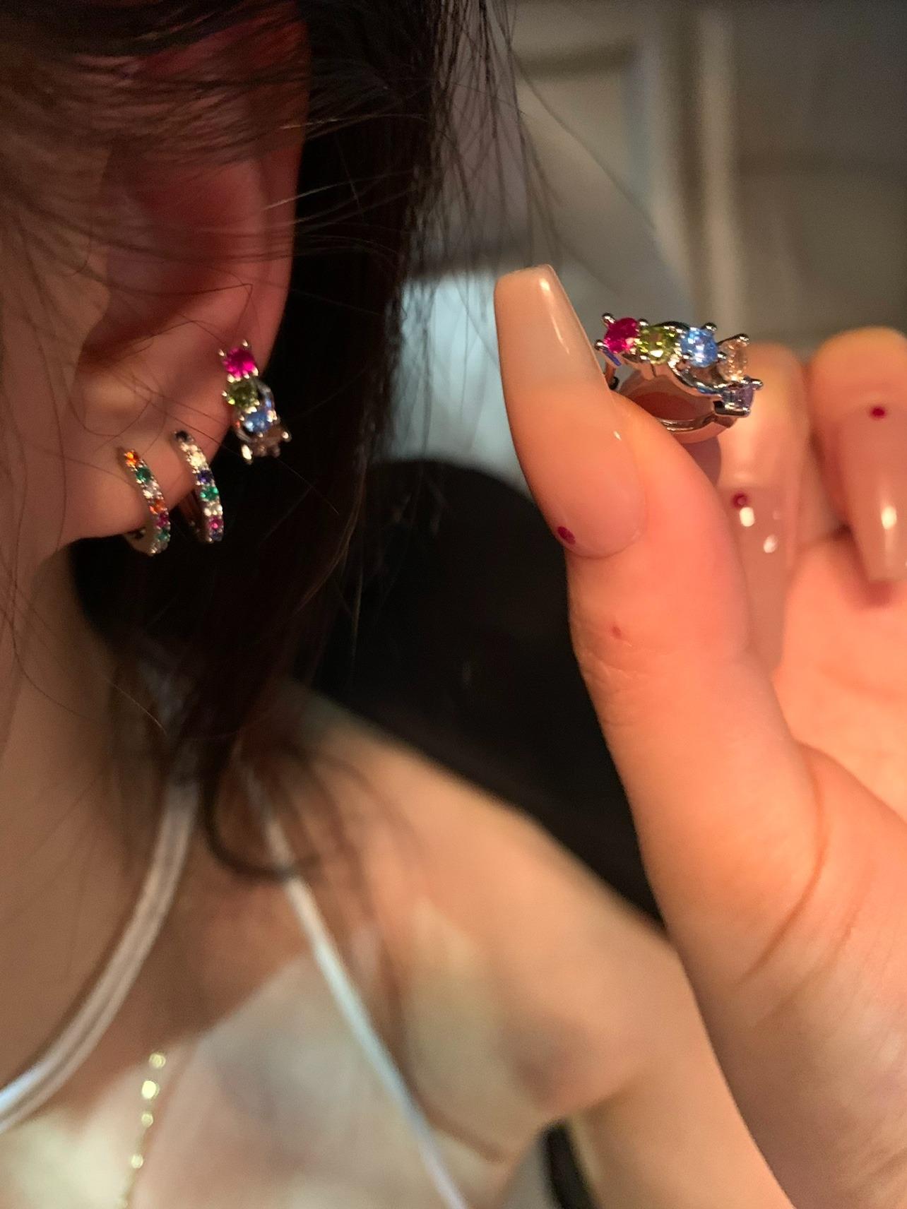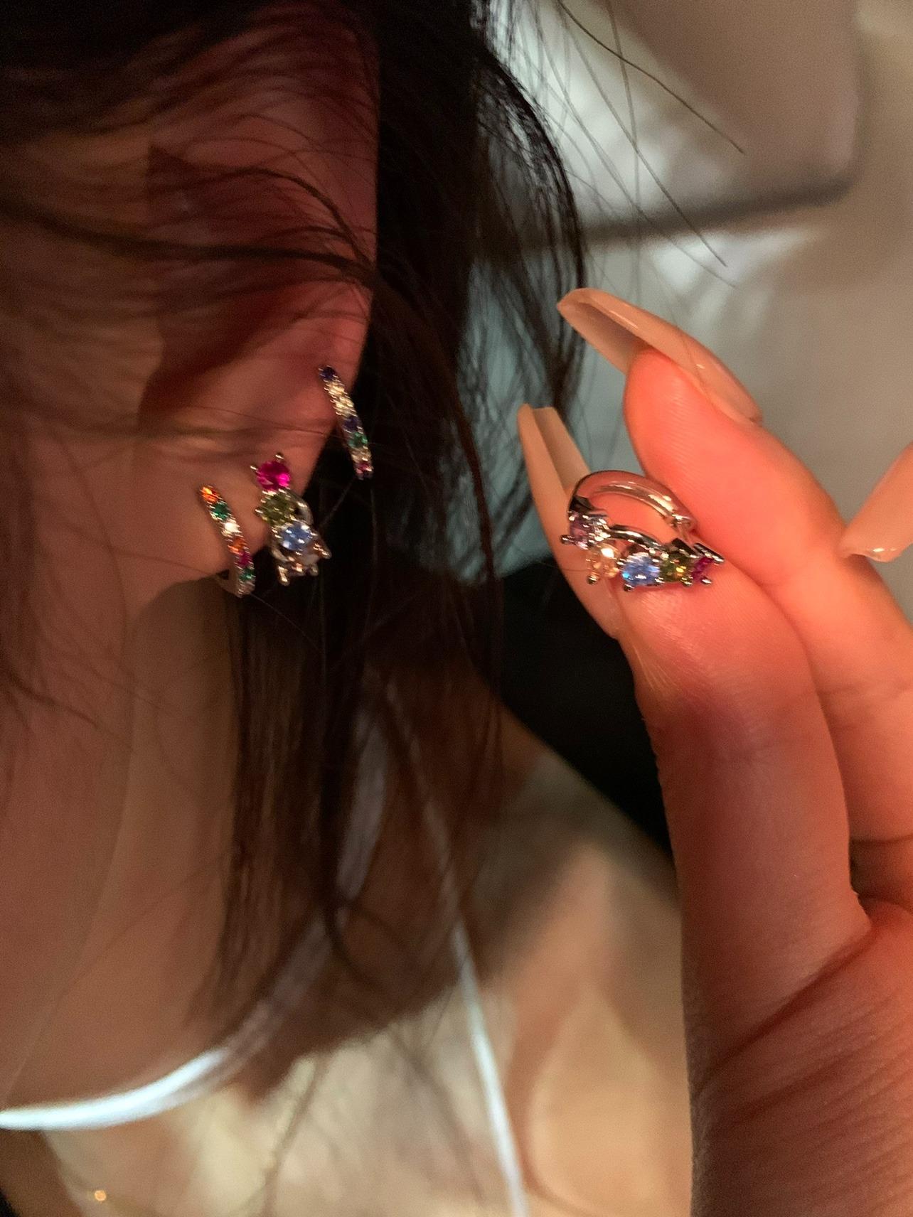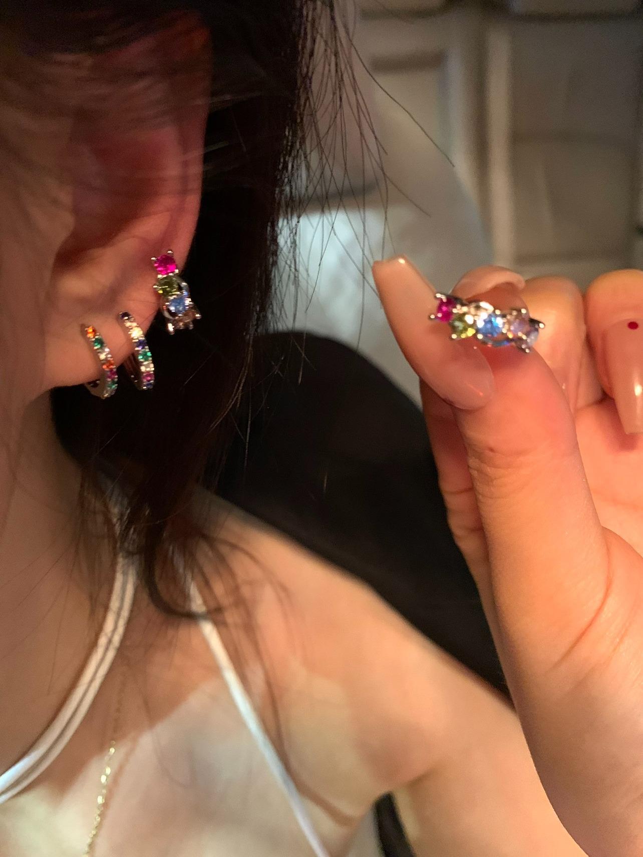 ¡Exquisito! Conjunto de 4 pendientes de circonita de colores para mujer, 2023, nuevos pendientes para mujer, joyería de alta calidad para las orejas.