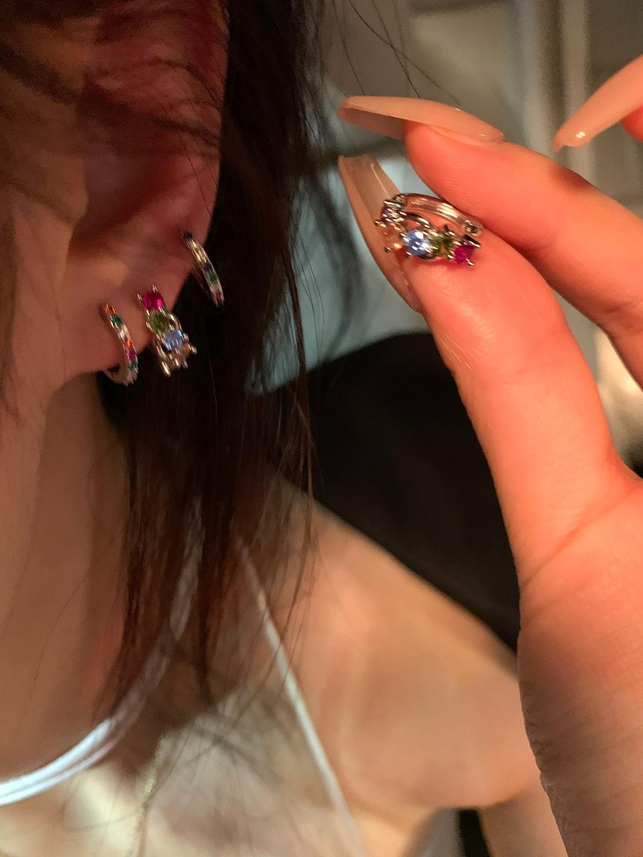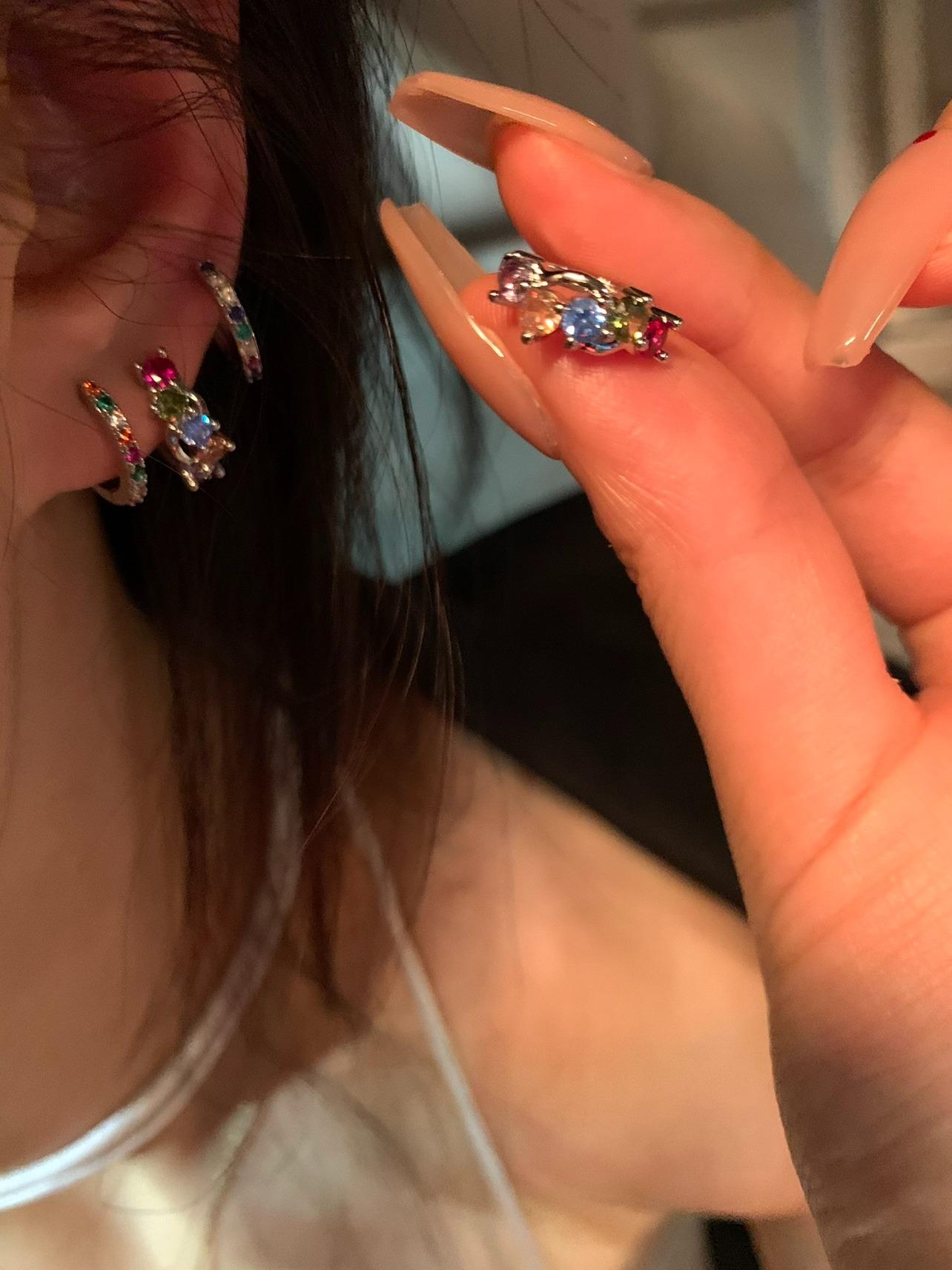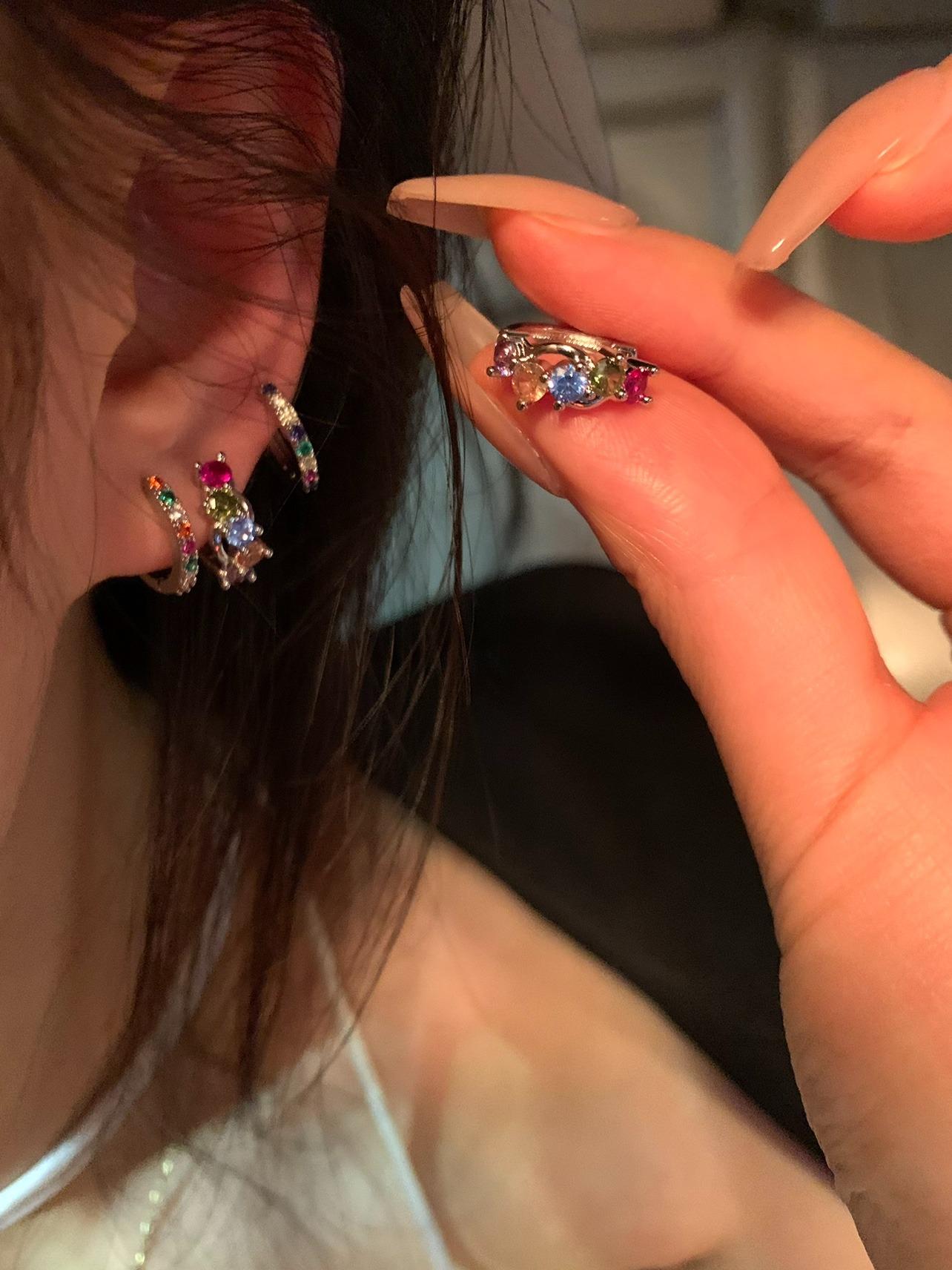 ¡Exquisito! Conjunto de 4 pendientes de circonita de colores para mujer, 2023, nuevos pendientes para mujer, joyería de alta calidad para las orejas.